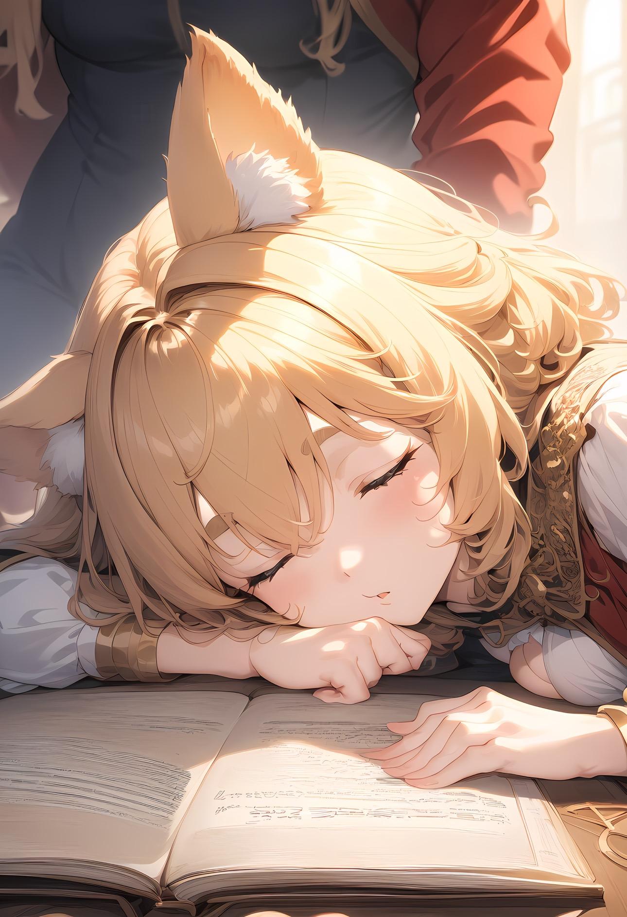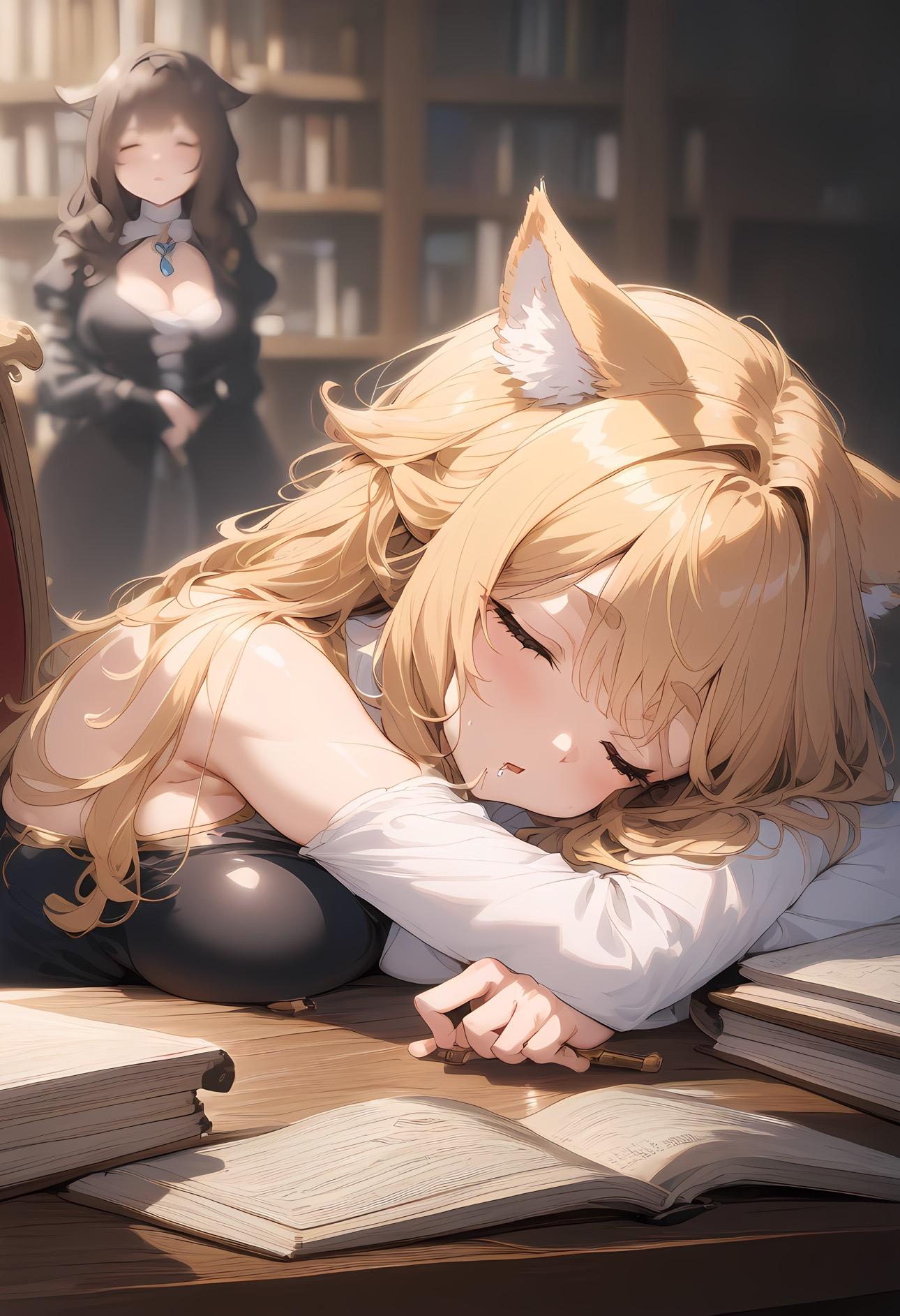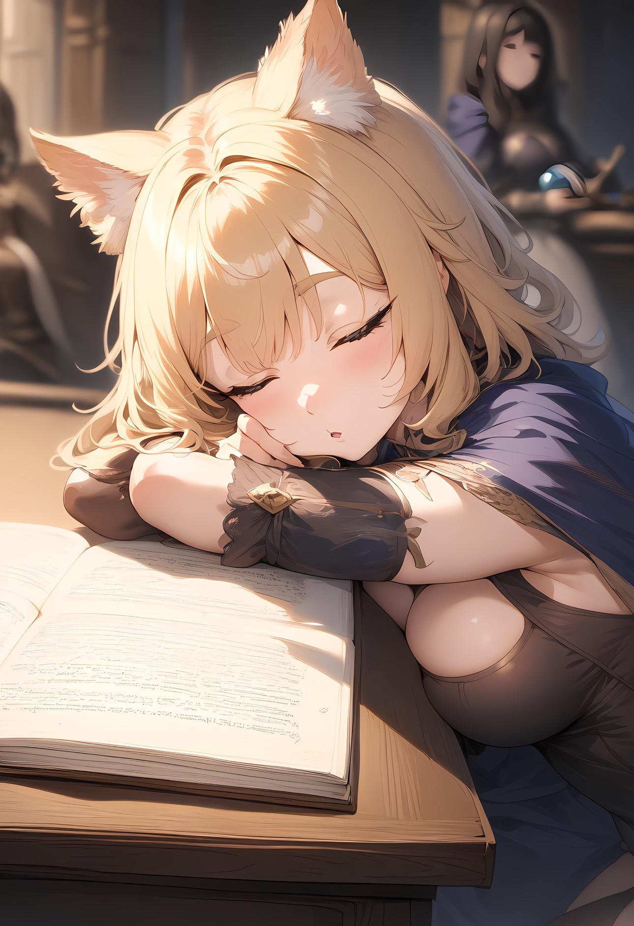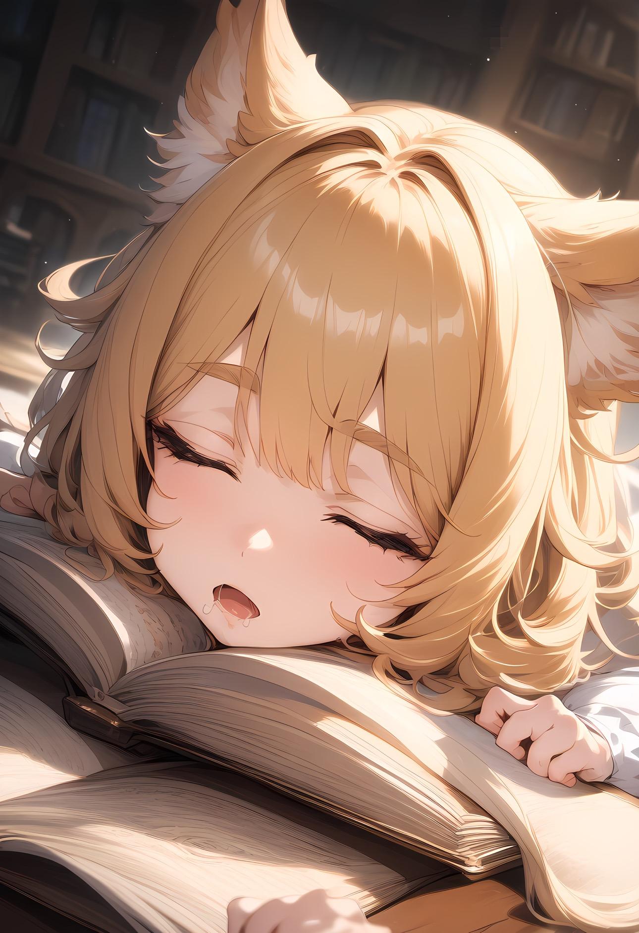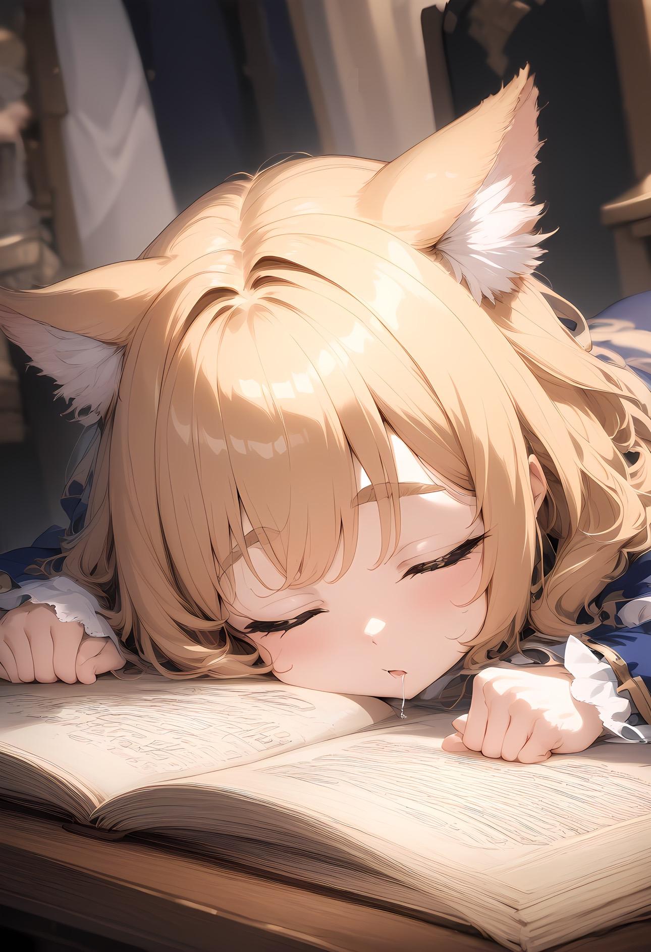あぁ、よだれ垂れてる。魔導書につきません様に。