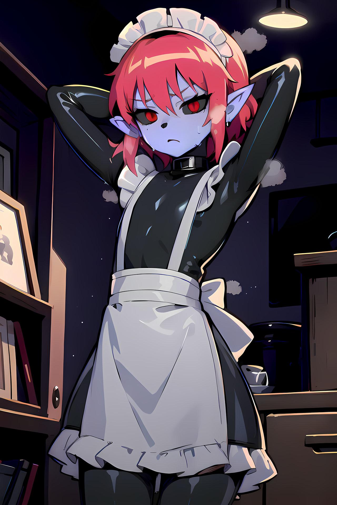 🔵…せめてゴムじゃなくて布でできたメイド服が良かったわ。