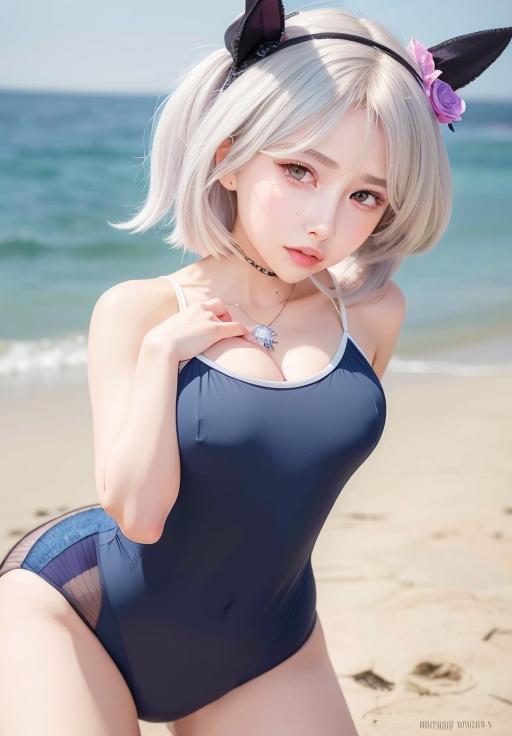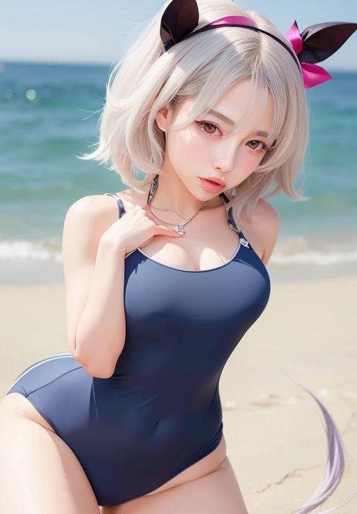 スク水でお胸が張りまくりなお姉さん系カレンチャンAIコスプレさん