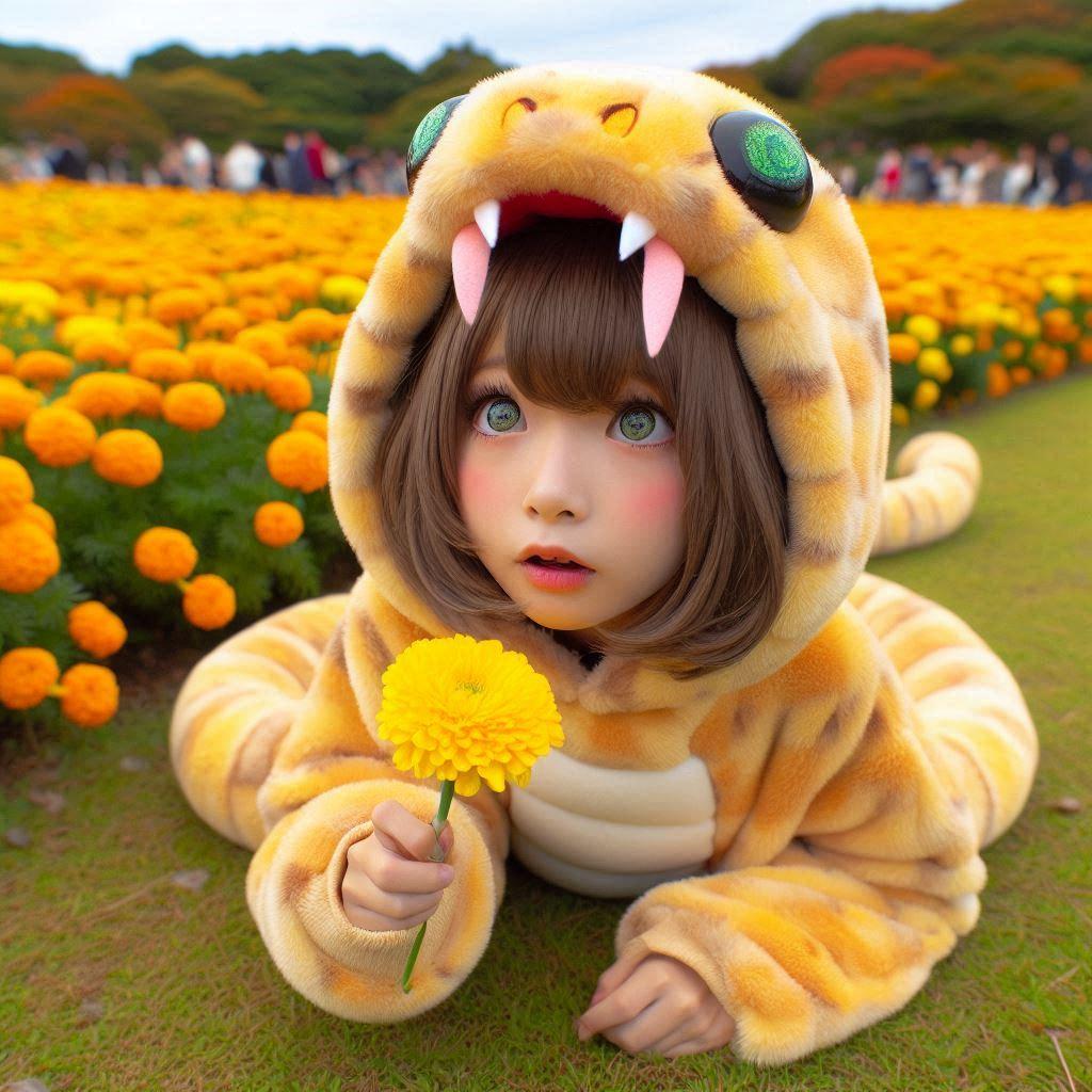 のこのしまアイランドパークでは今マリーゴールドが見頃です。