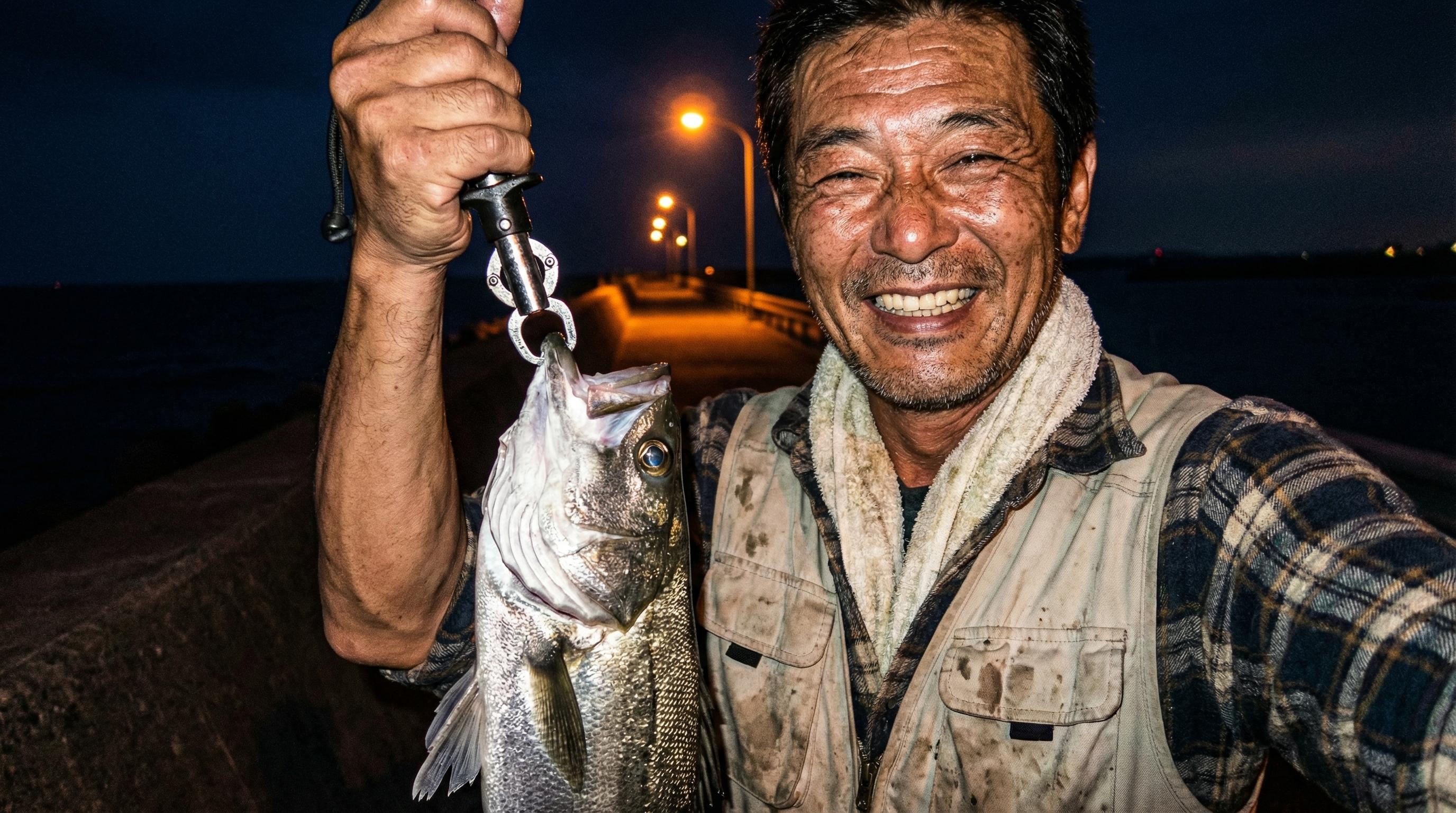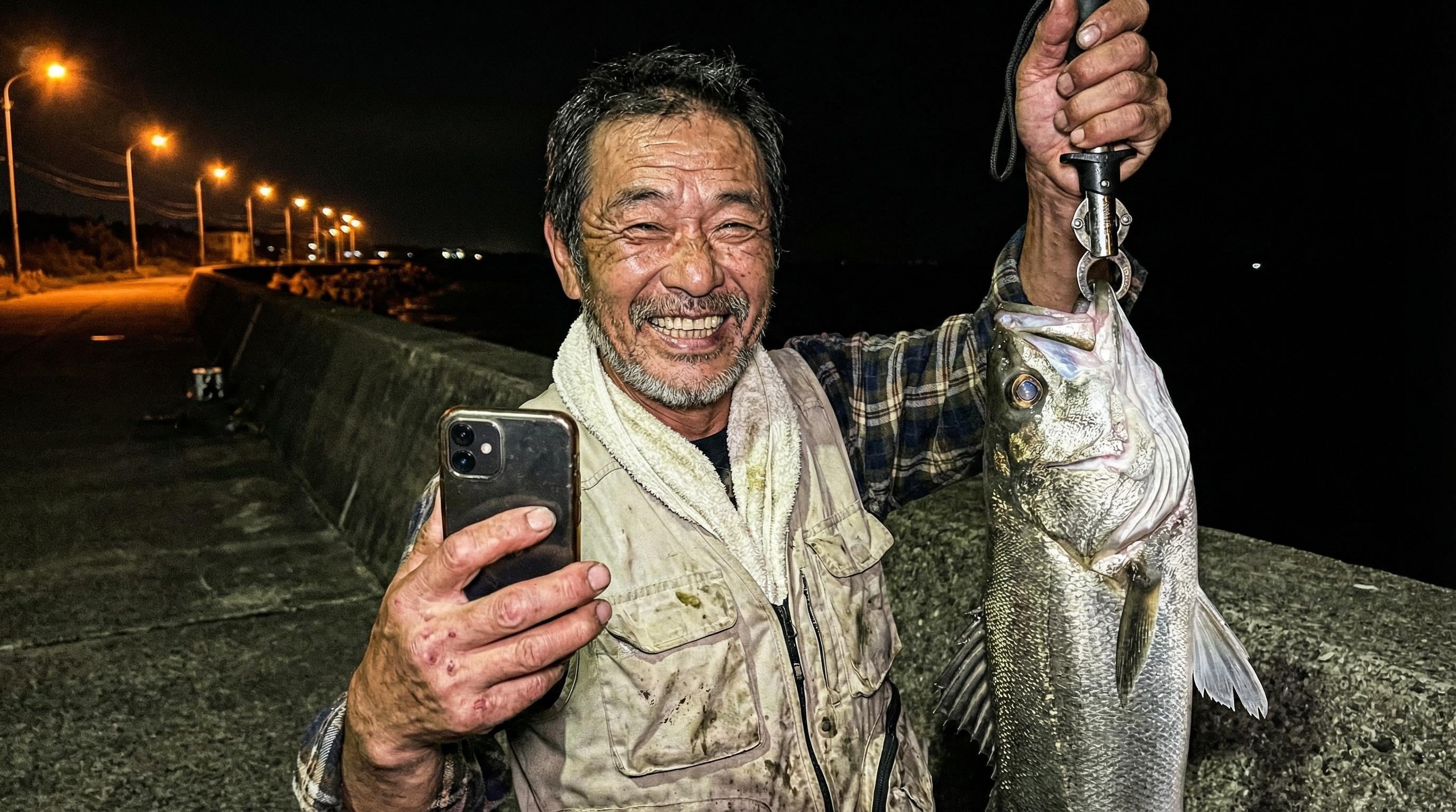 Gemini 3 Proでシーバスを釣り上げニコニコ自撮りおじさんと女