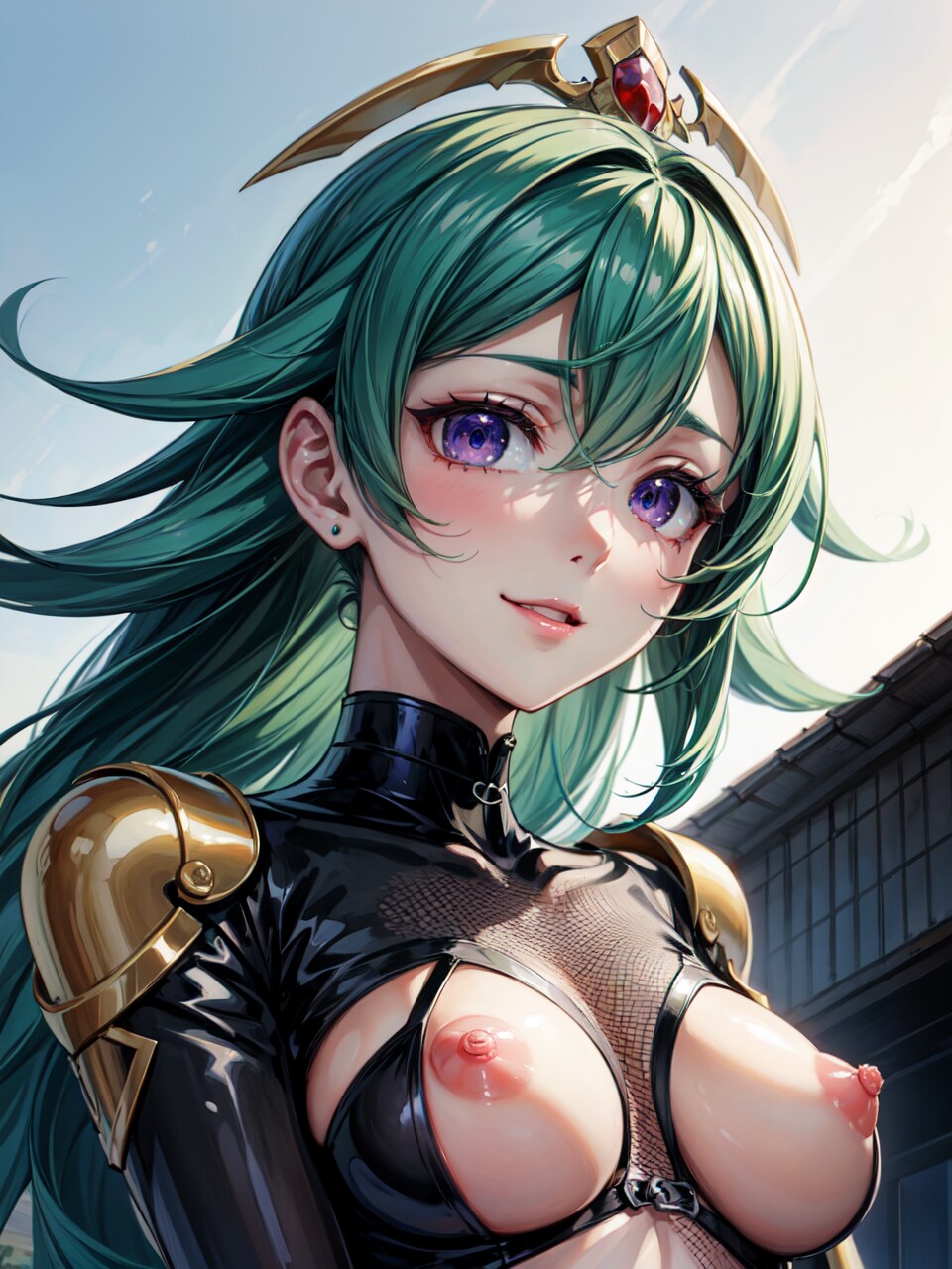二次おっぱいポロリ131《緑髪あみあみボディースーツ》