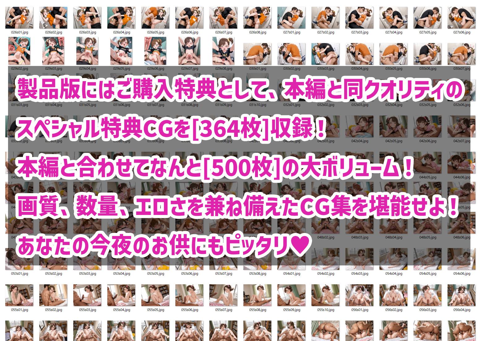 また製品版には、本編Hシーンの差分合計346枚+おまけの特別イラスト18枚で364枚のCGを購入特典として付属しております。