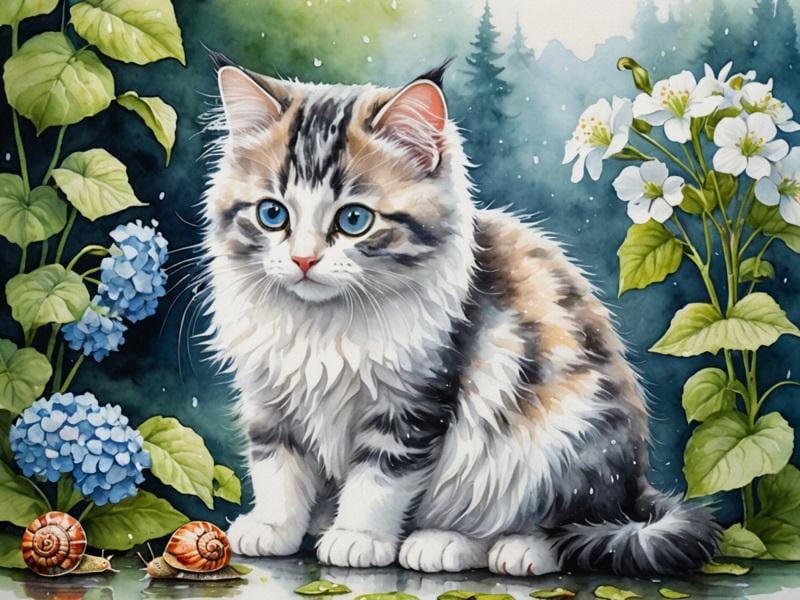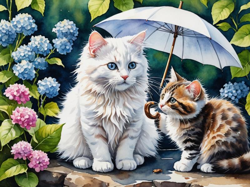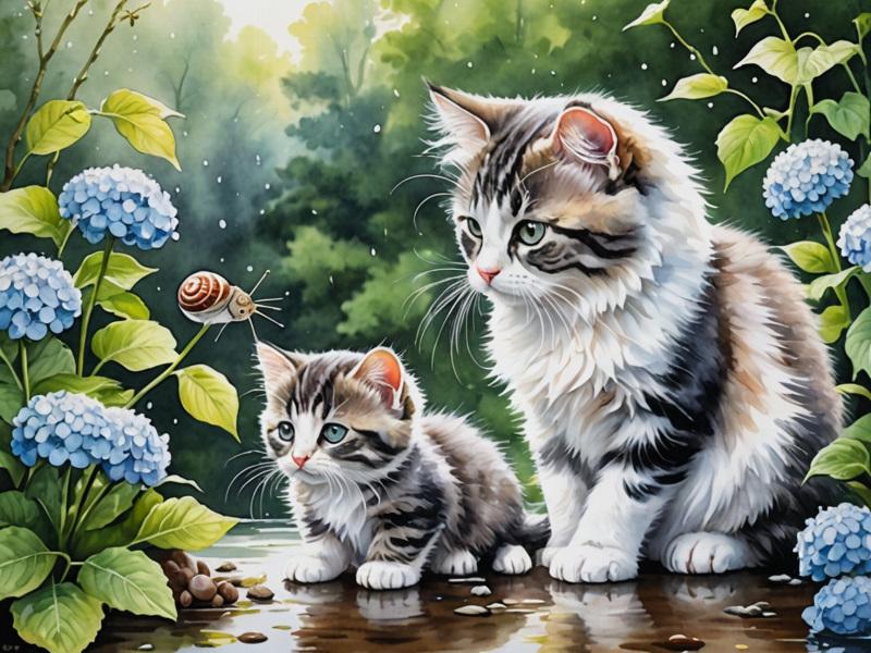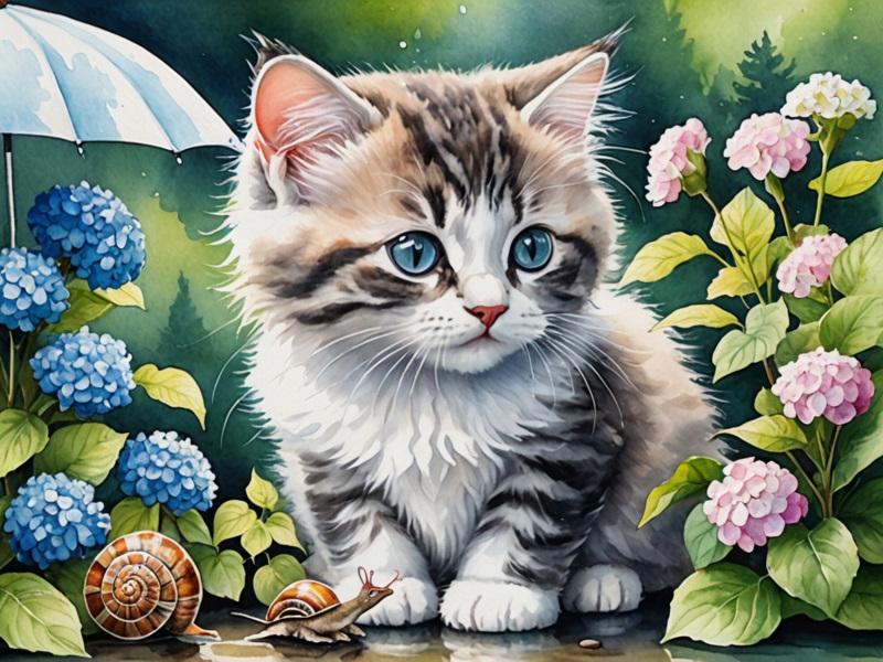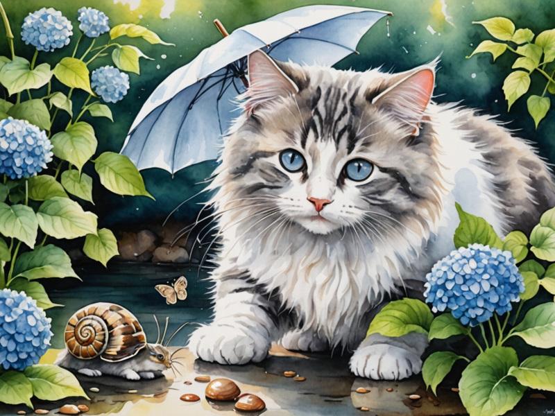 紫陽花、猫、カタツムリ、傘をさした少女、の呪文を唱えたのだけど、