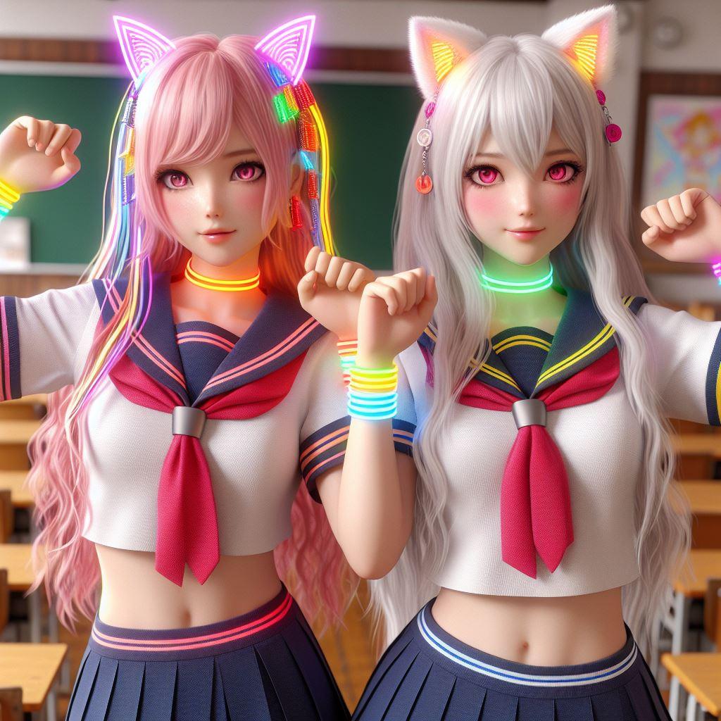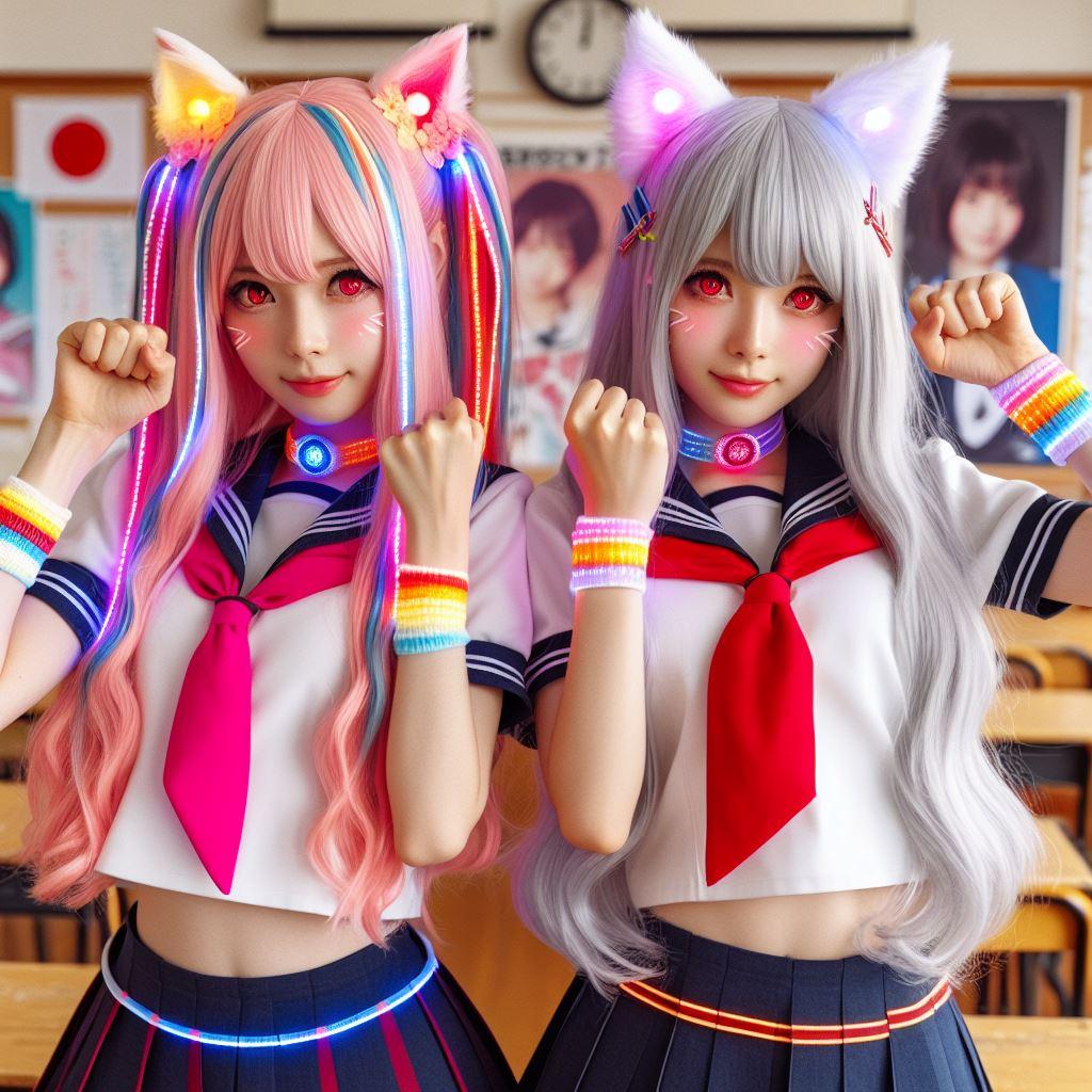 ウチノコちゃんの首振りダンスを真似てみた二人。