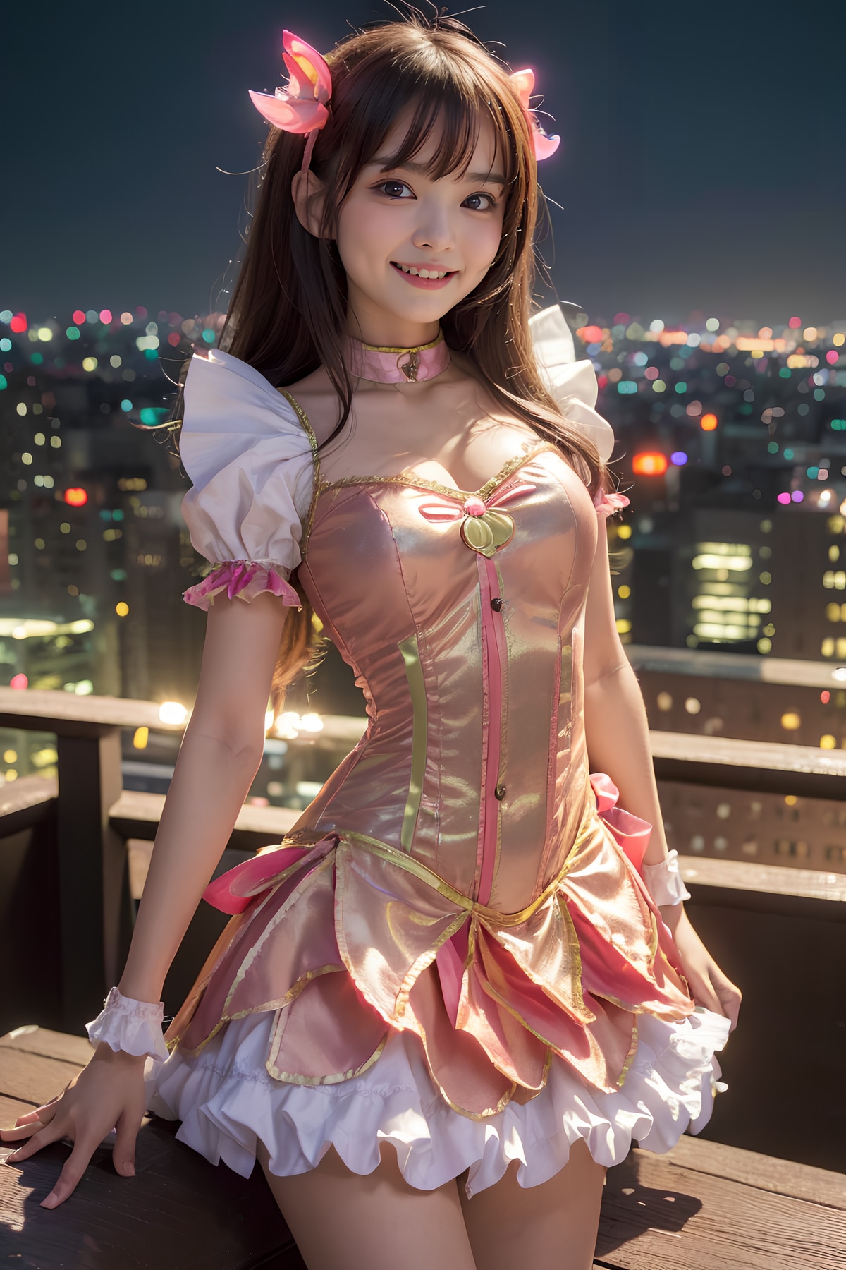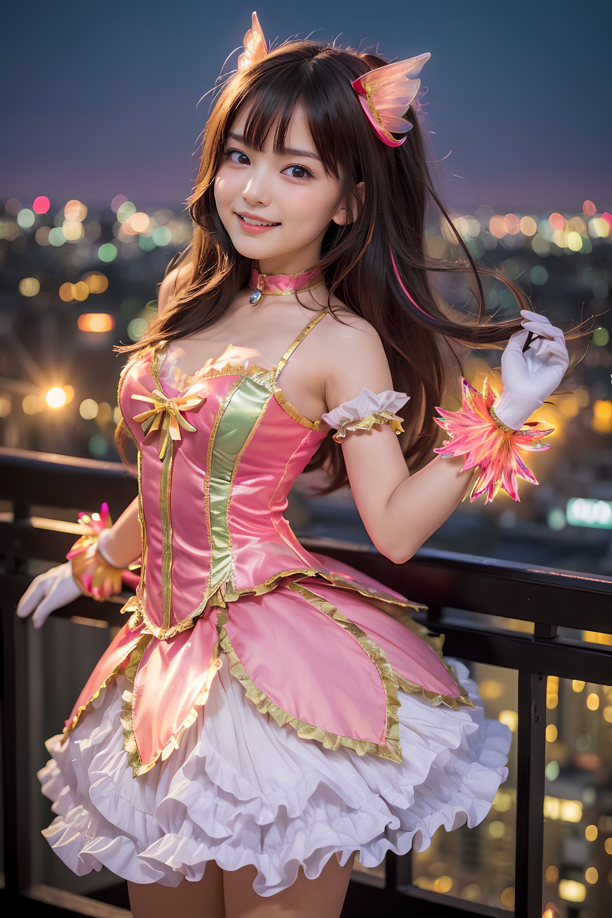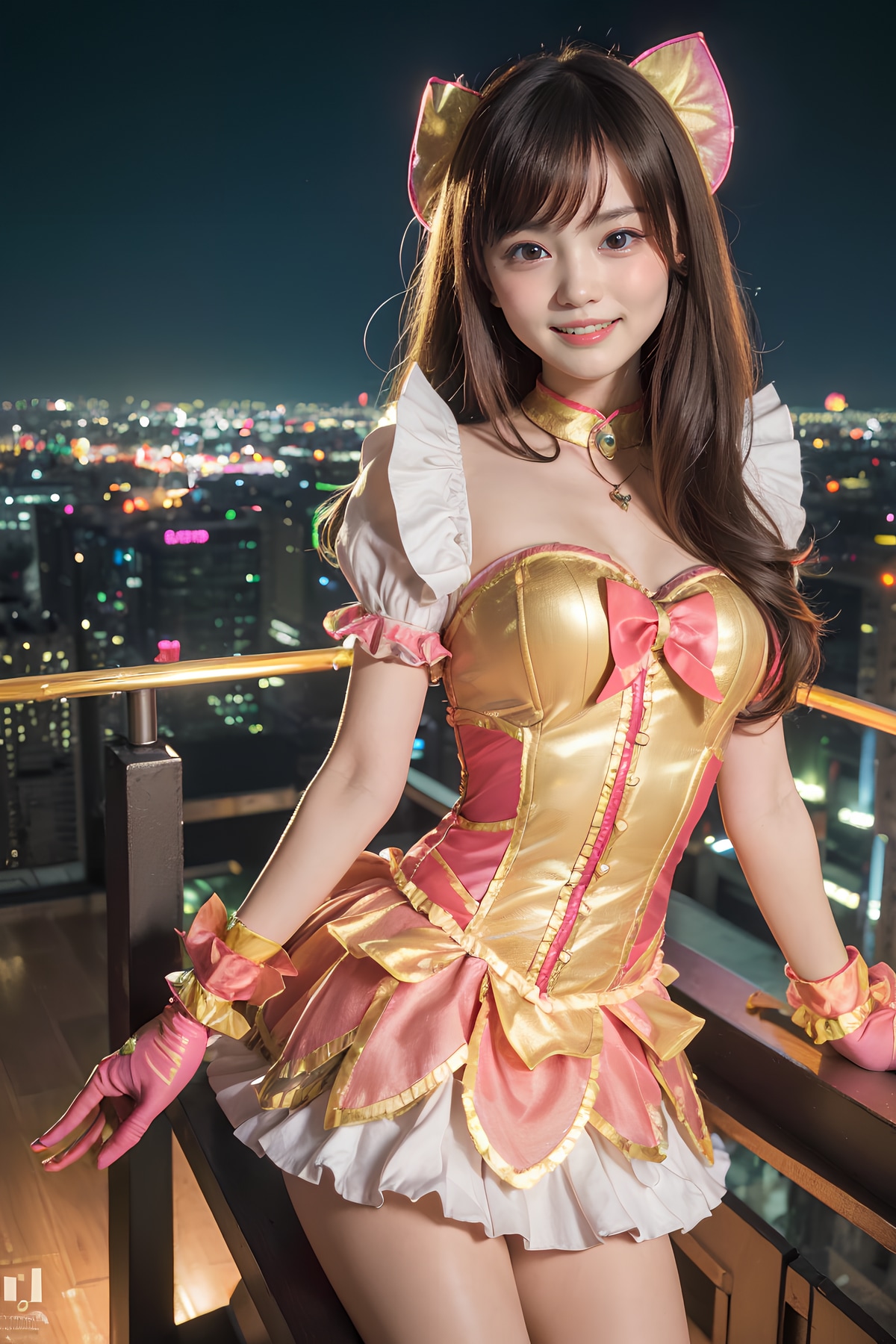 以前、JK香織で使ったまどマギコスLoRAをトリガワード抜きで少しだけ効かせて、後は魔法少女コスって強めに指定したら結構いい感じの魔法少女コスができました。
