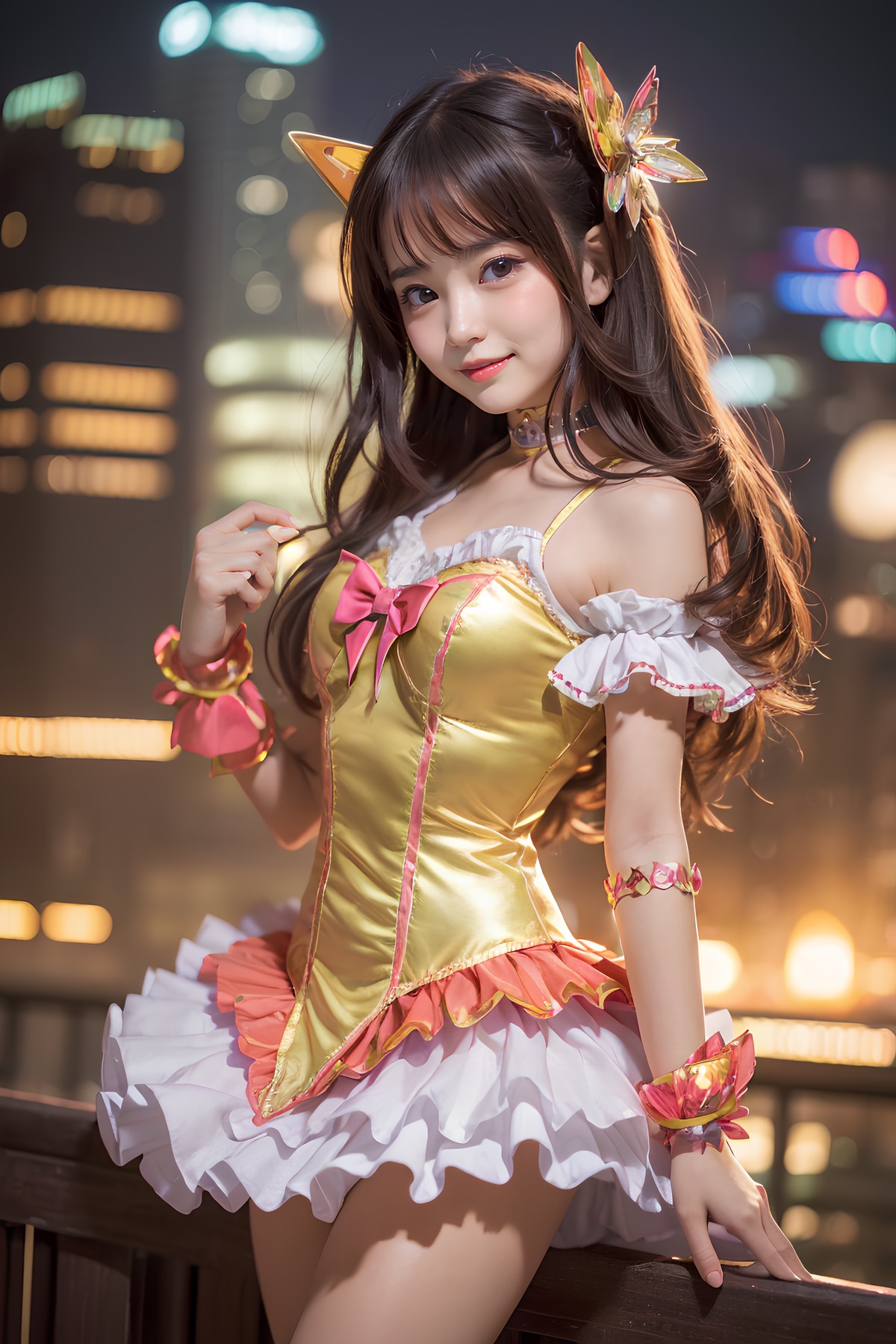 でもちょっと色味が地味だったので「Luminous and colorful lighting setup for model photography」でカラフルさを追加したら夜景も綺麗になって衣装もすごくカラフルになってくれました🥰