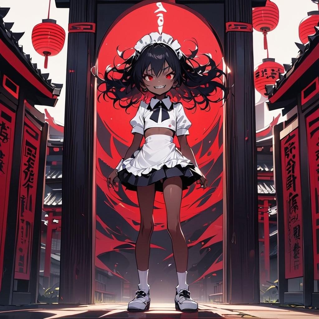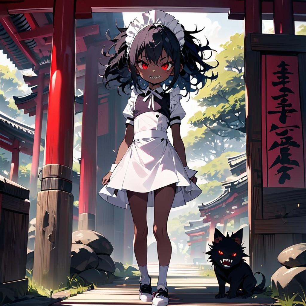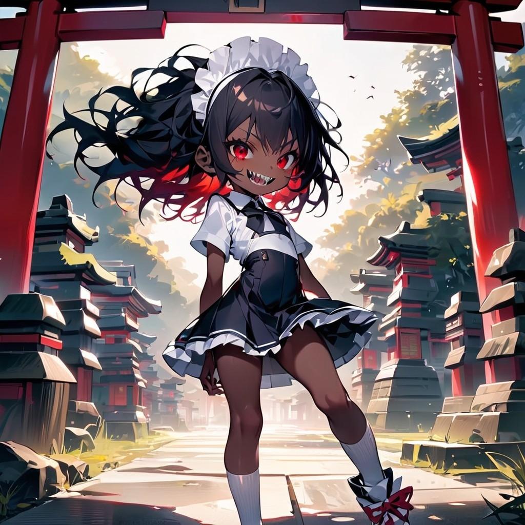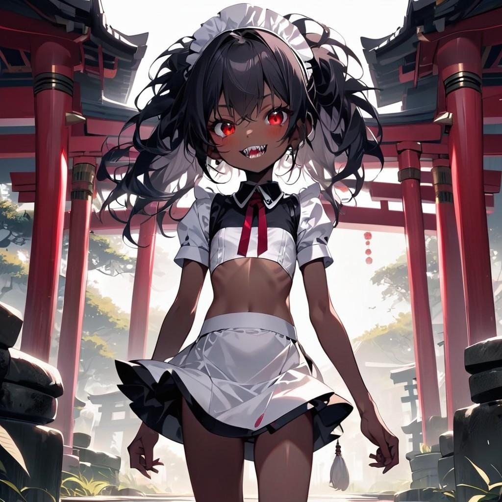 代わりに看板娘達の背景をなるべく被らない様にとこの娘には神社に立ってもらいましたが、何か禍々しさが新たに加わった気がします((;゚Д゚)