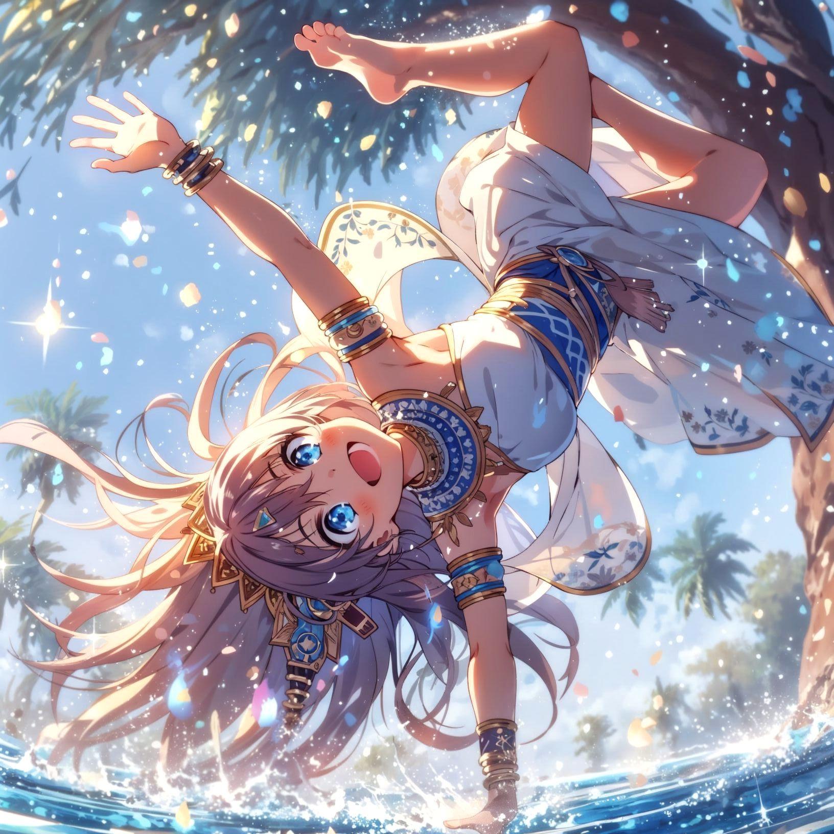 空へと伸びる足、風に舞う彼女のスカートは、まるで自由を満喫しているかのようだ。