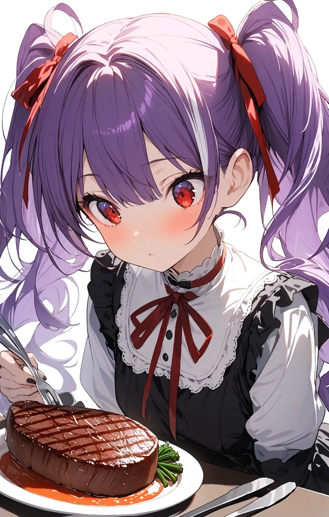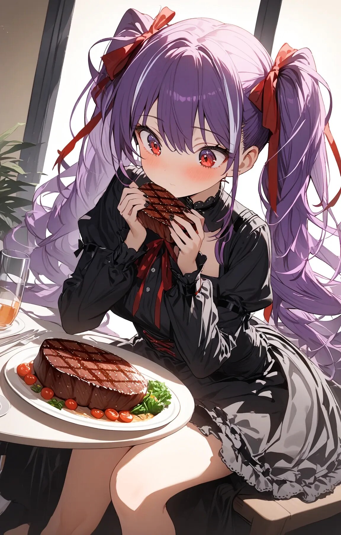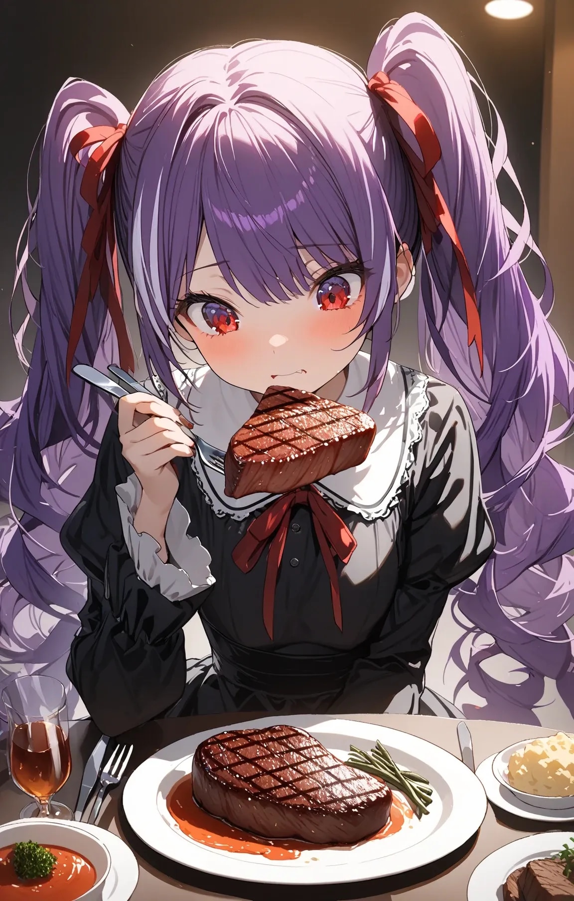 夕食はステーキです★紫色の女の子