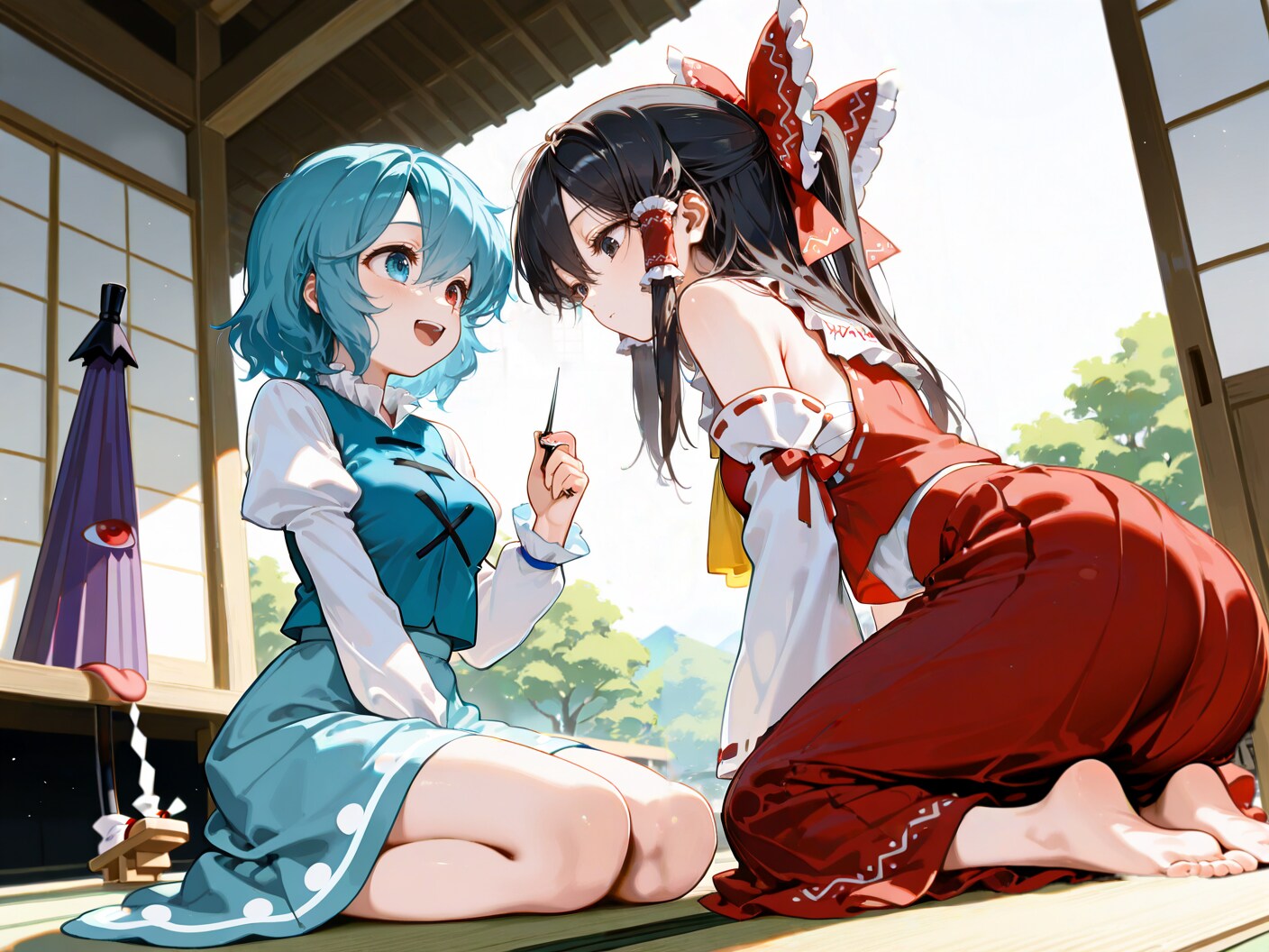 こ「霊夢さん、また一緒に踊ってください……これお面」