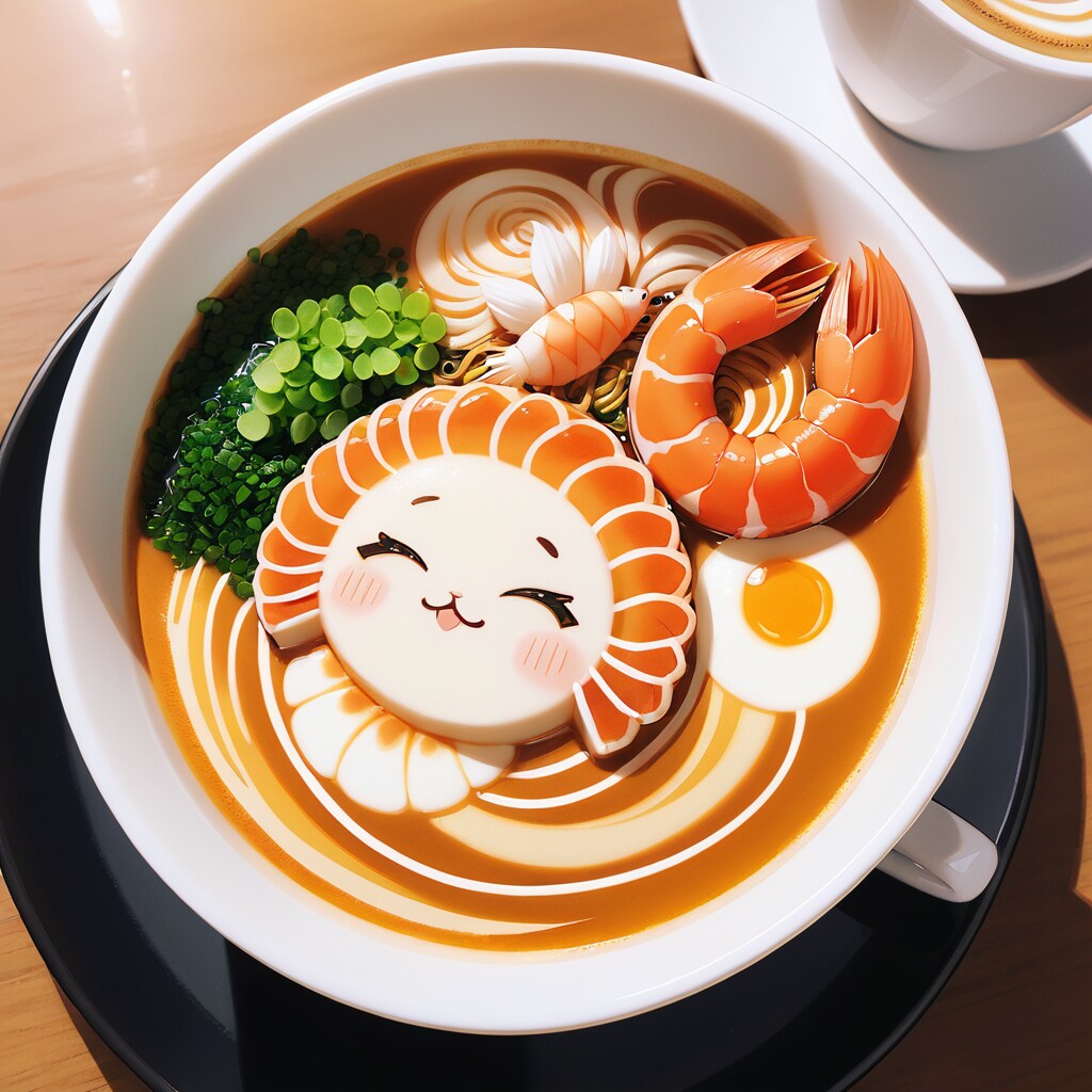 「seafood noodleのラテアート_20240205」が2024年2月5日のちちぷい生成機能デイリーランキング6位に入りました!