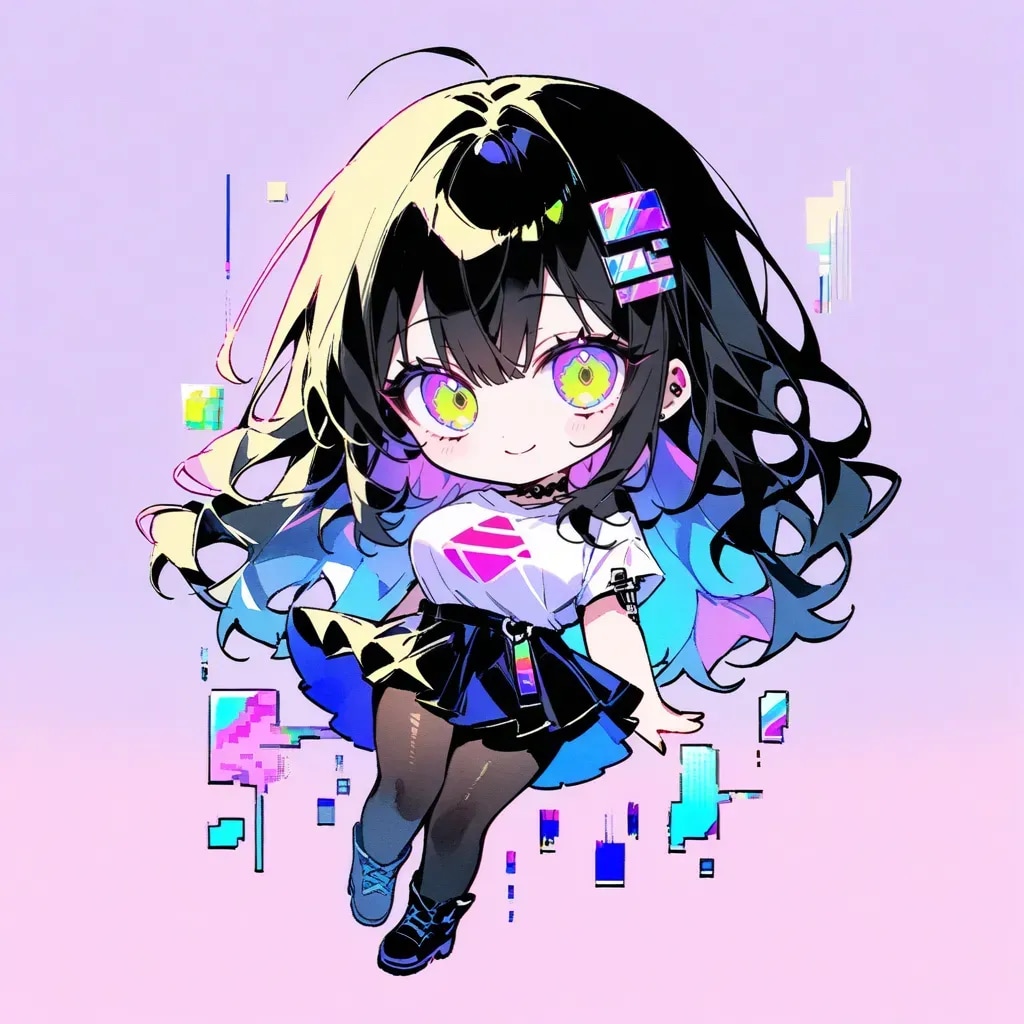 名前は知る人ぞ知る「アネ゙デパミ゙」から来ているので、プロンプトにglitchを加えています