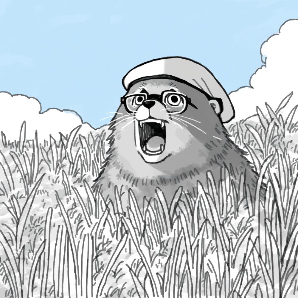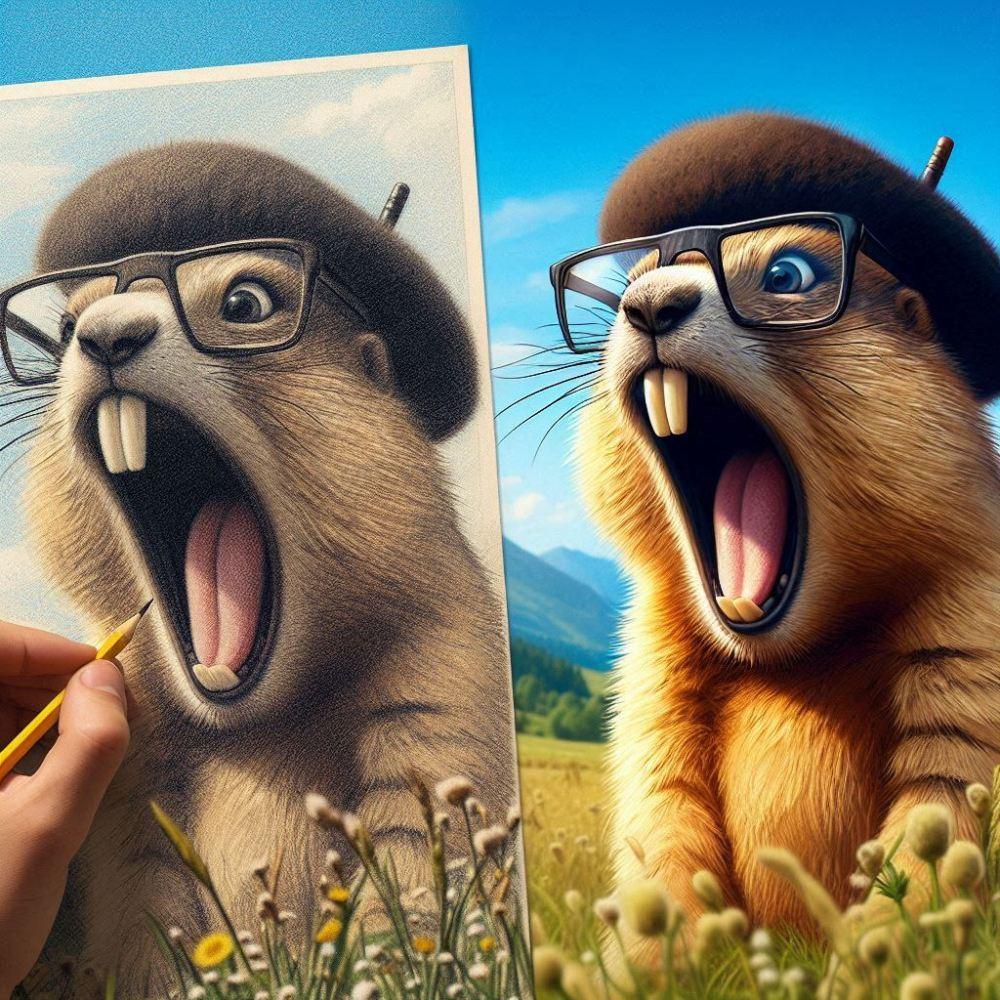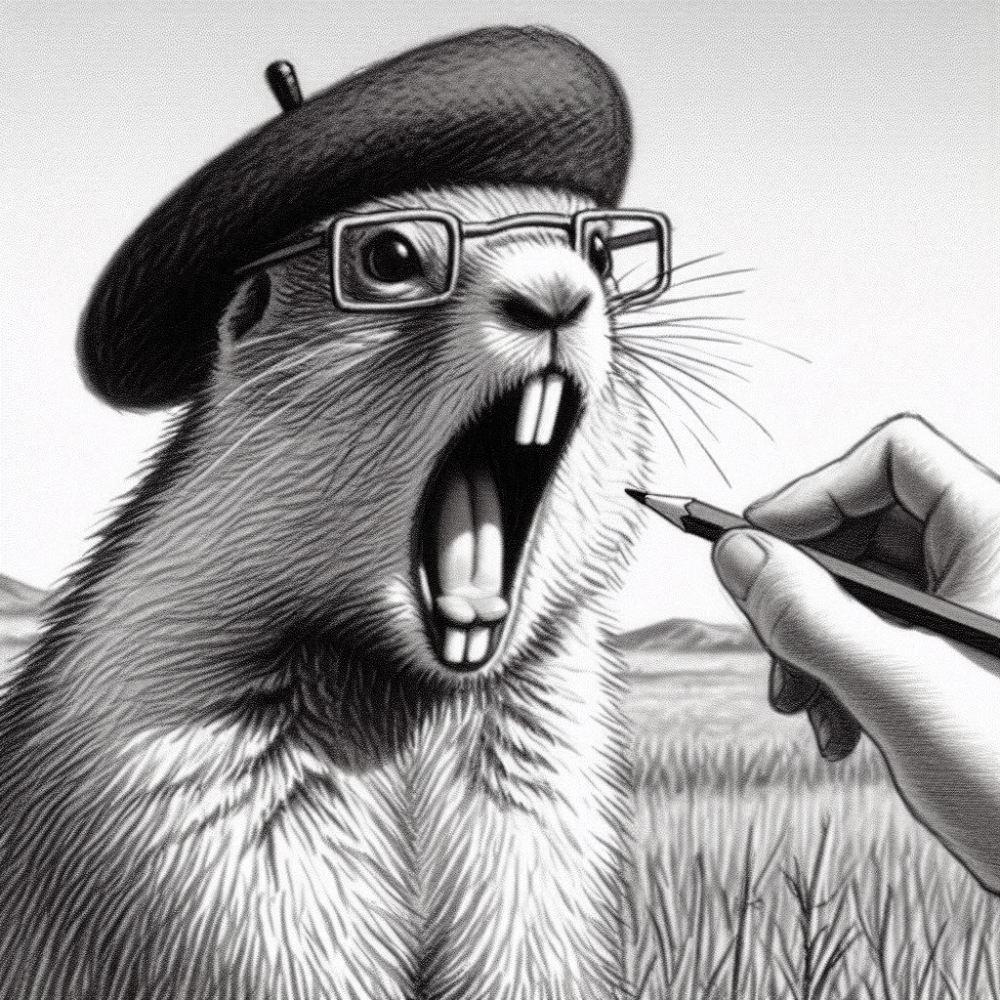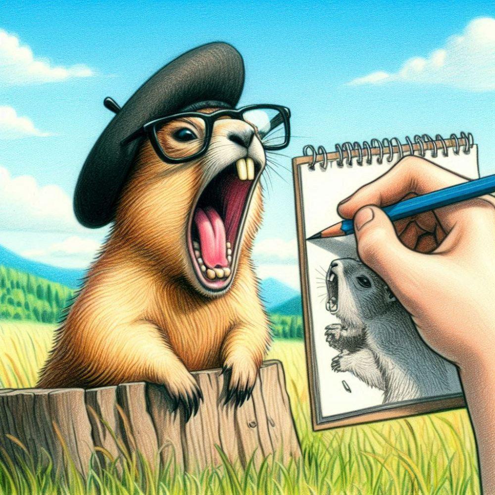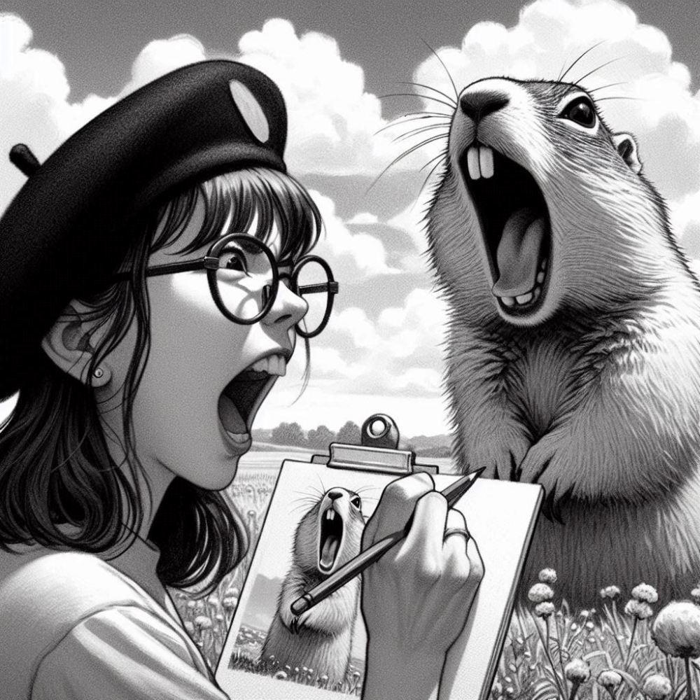 鉛筆画風、鉛筆で絵を描く画家マーモット