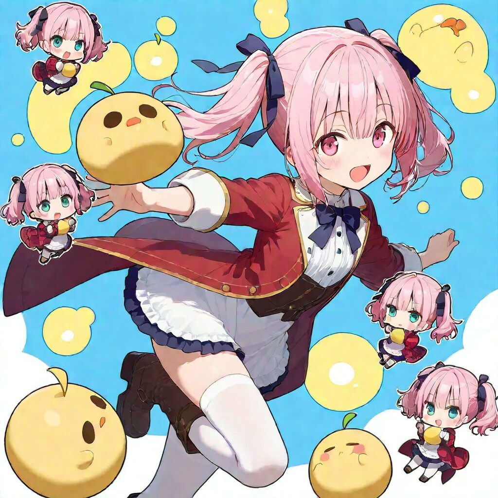 最初、真ん中の女の子のデフォルメ形態がたくさん描かれていると思ったけど、目の色が違うので自分の姿に似たチビたちを式神のように使役しているのかも知れない。