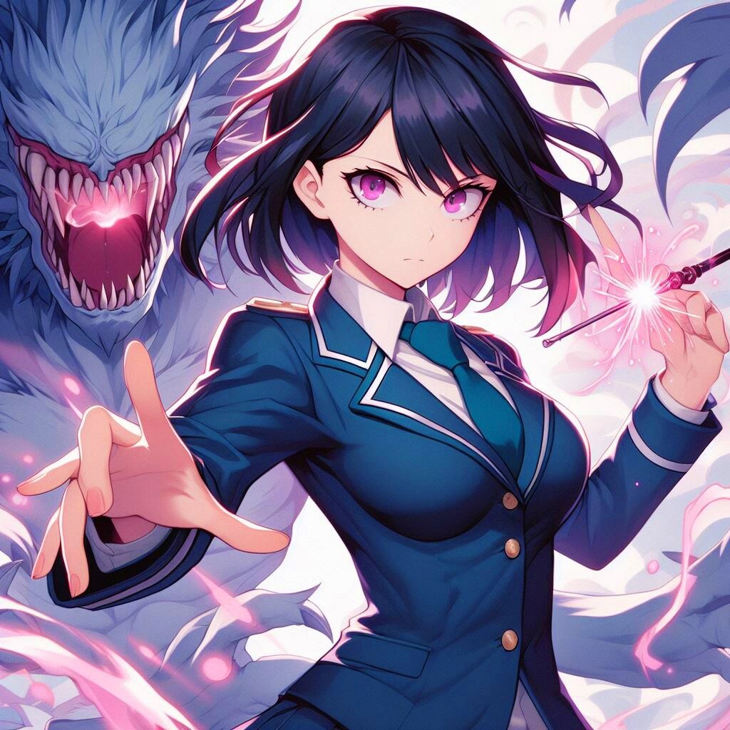 モンスターと戦う、黒髪セミロング少女!!(4枚)
