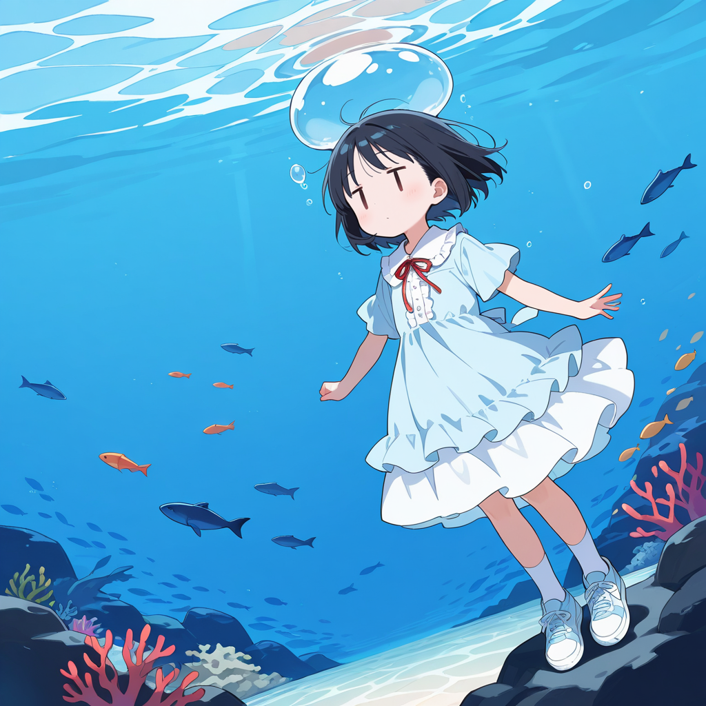 海底に着いたところで泡が割れてしまったが、意外と大丈夫だったので散歩する。