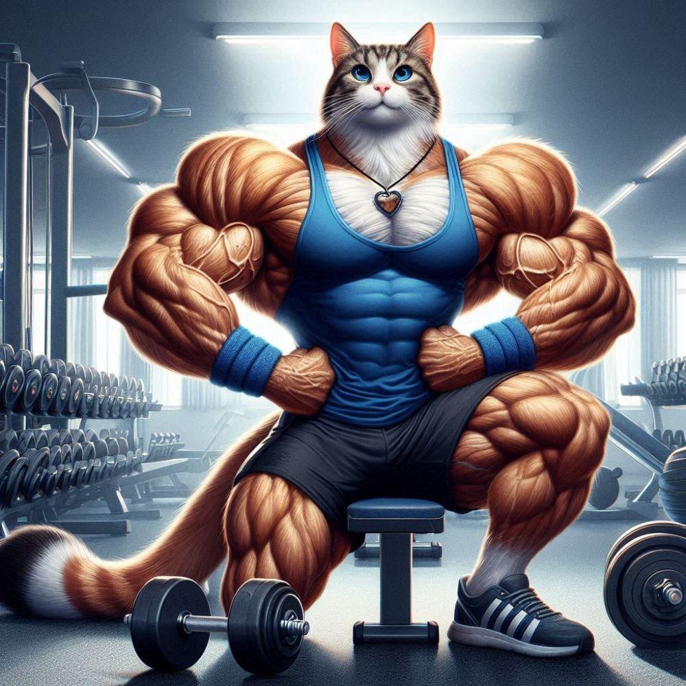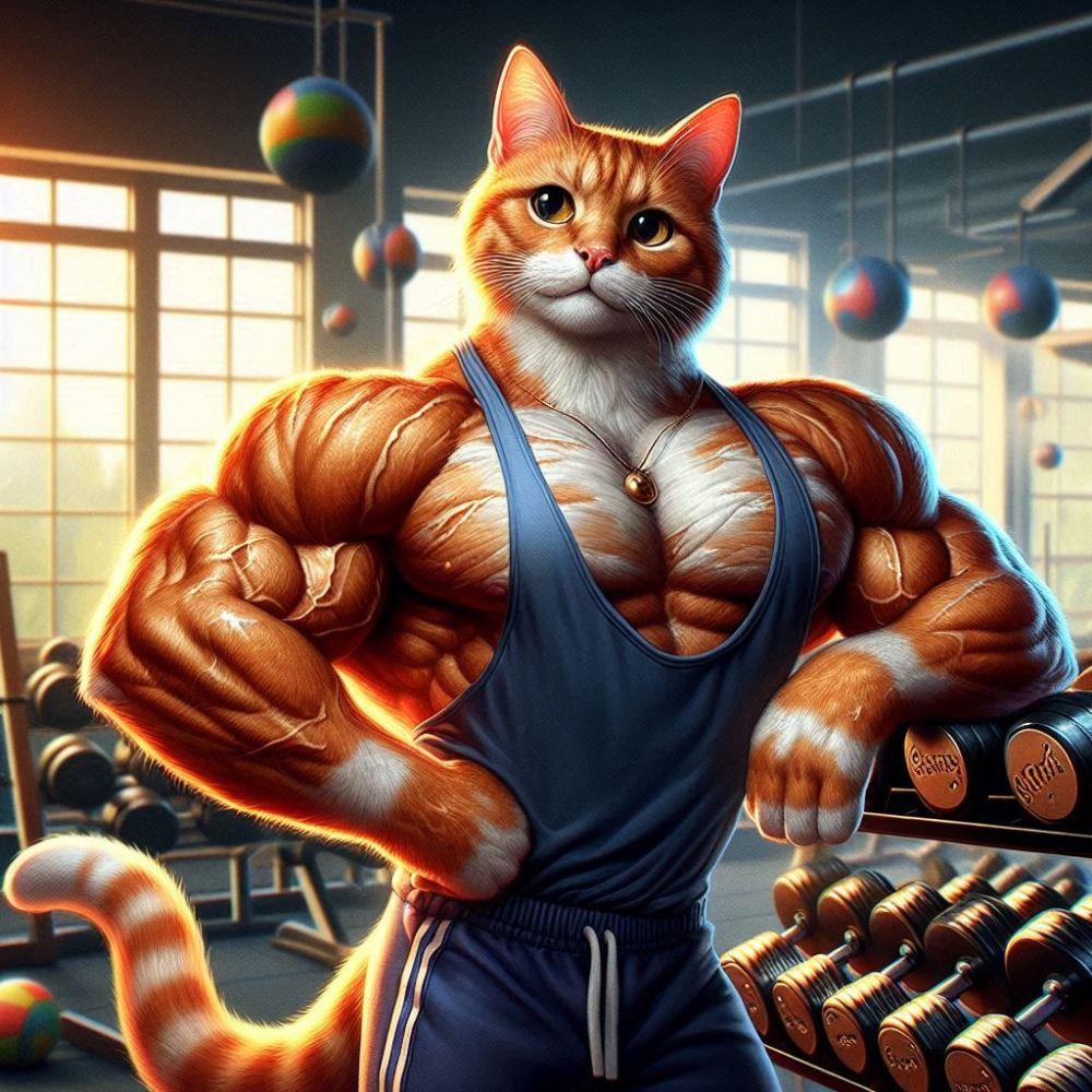ファンタジー風 タンクトップでポージングする筋肉猫