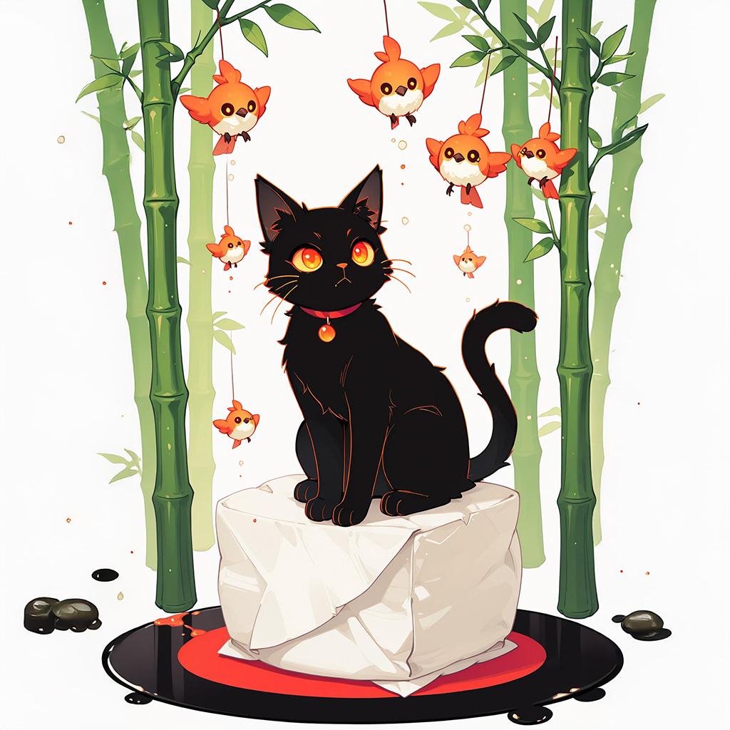 ピヨ飾りと黒猫『ニャンでいっぱい?』