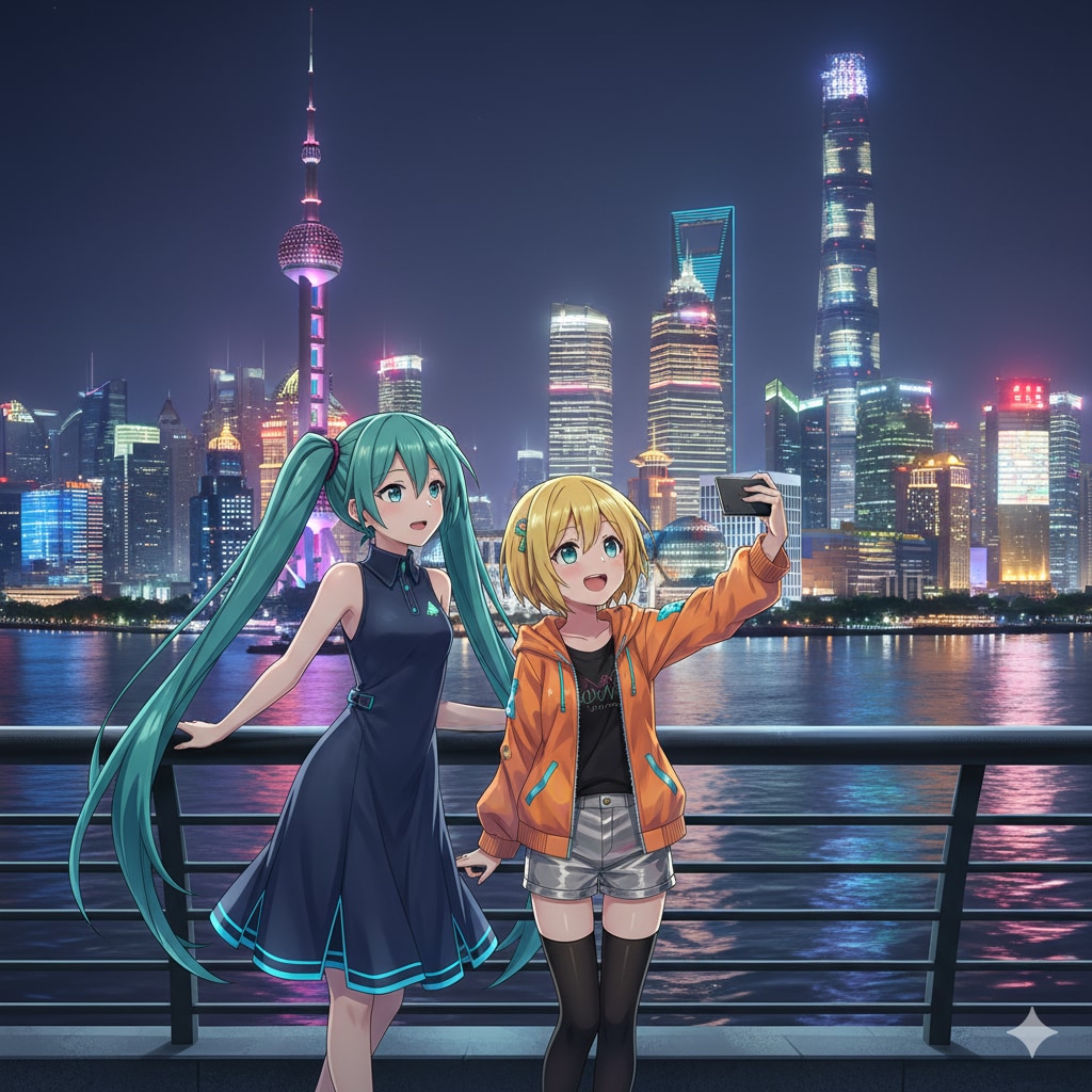 中国旅行に来た ミクさんリンさん