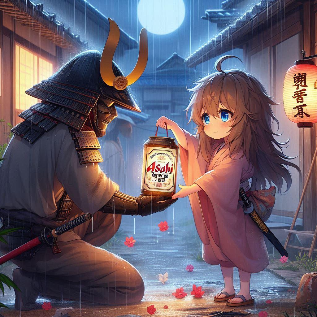 提灯をお侍に貸す小さな女の子