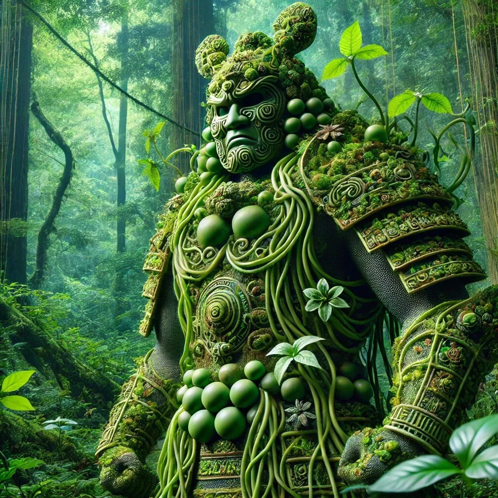 古代の造形と自然が融合し、まるで大地の守護者のような雰囲気になっています。