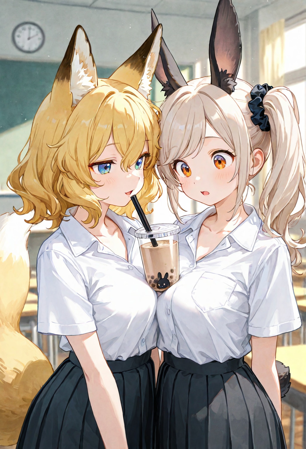若者に人気のタピオカミルクティー店、卯山茶(うさちゃ)でタピオカを買った、睦月ちゃん🦊と如月ちゃん🐇