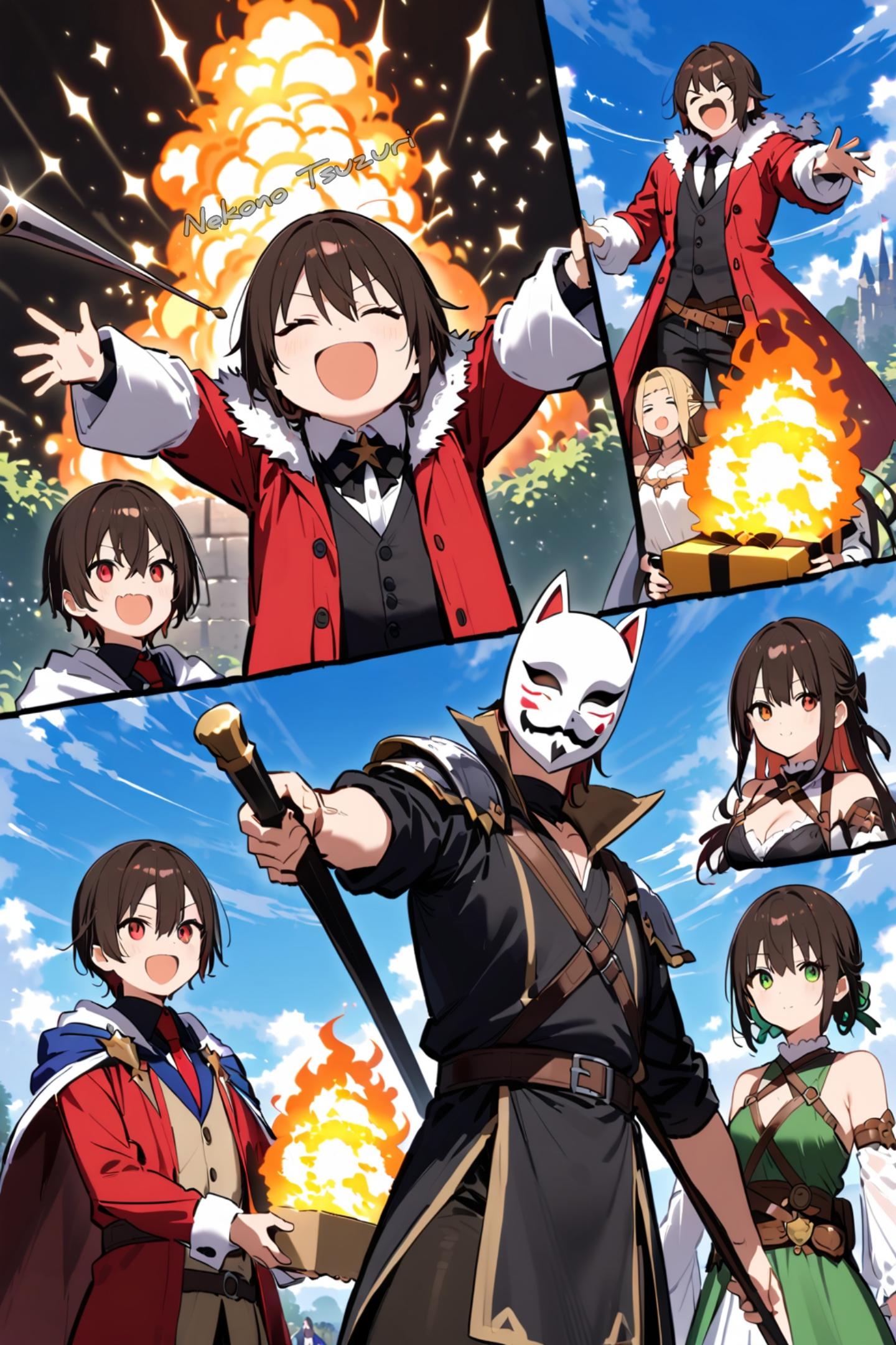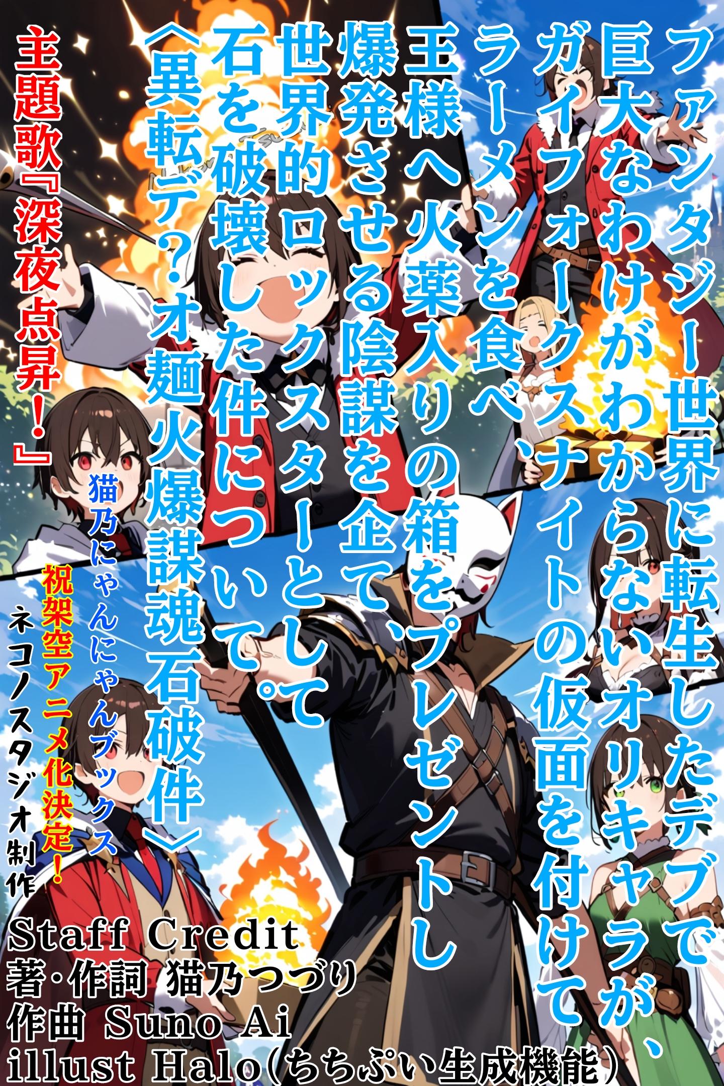 ファンタジー世界に転生したデブで巨大なわけがわからないオリキャラが、ガイフォークスナイトの仮面を付けてラーメンを食べ、王様へ火薬入りの箱をプレゼントし爆発させる陰謀を企て、世界的ロックスターとして石を破壊した件について。