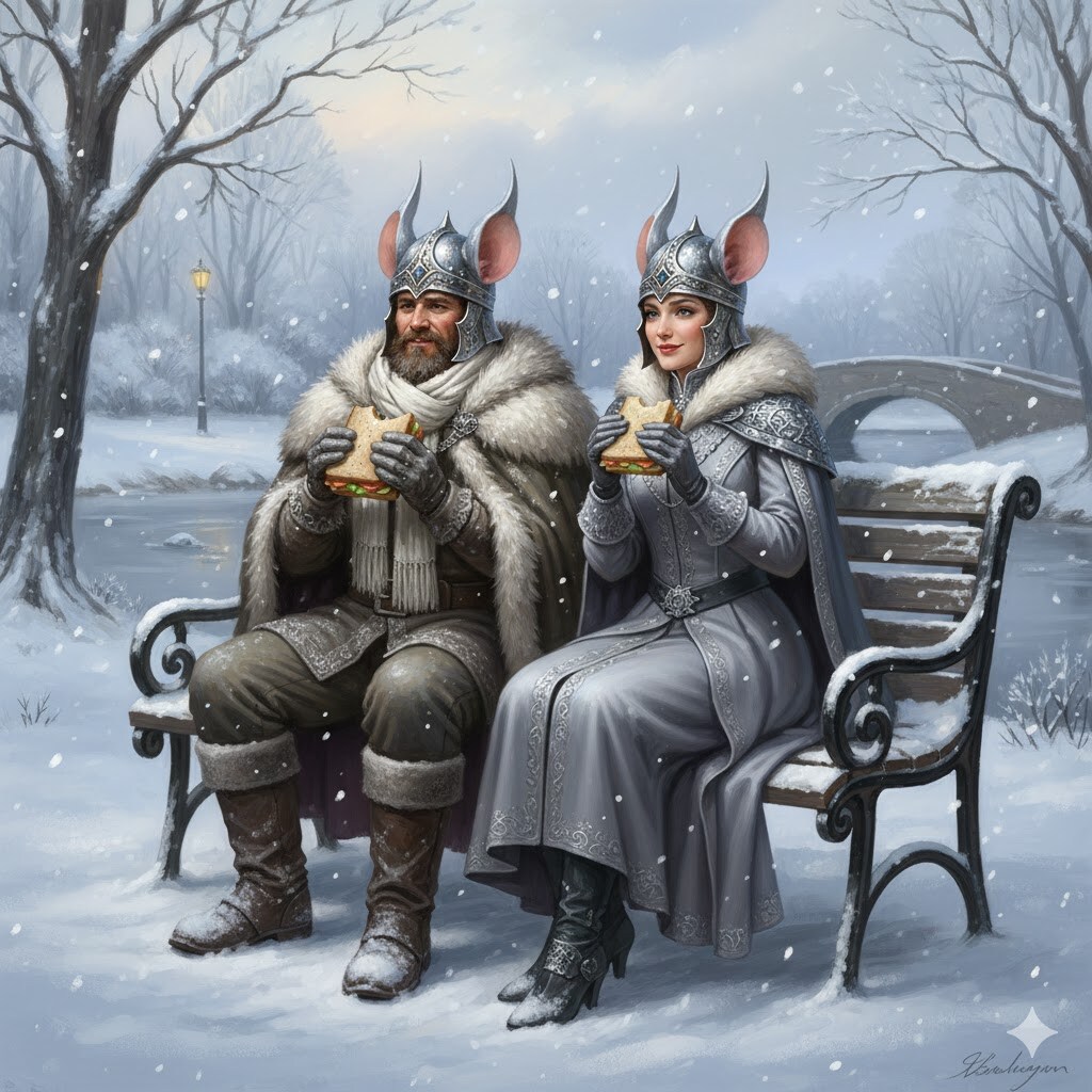 サンドウィッチ食べた、ねず耳の二人の冬将軍