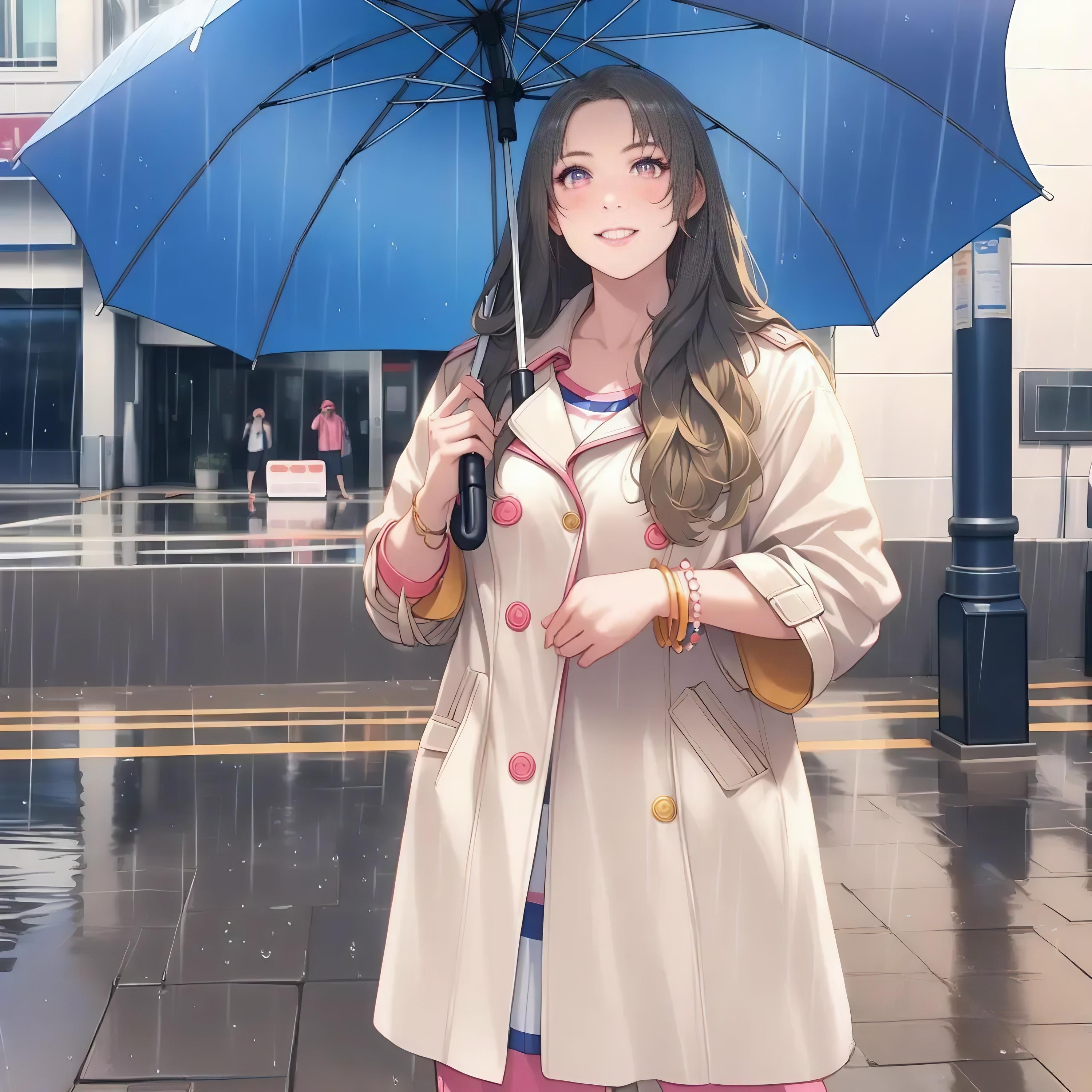 雨の日でも会いたい。そういう時の待ち合わせをイメージ。スタイル変えると、女の子の雰囲気も変わってきた感じ。傘がおかしいけど気にしない。
