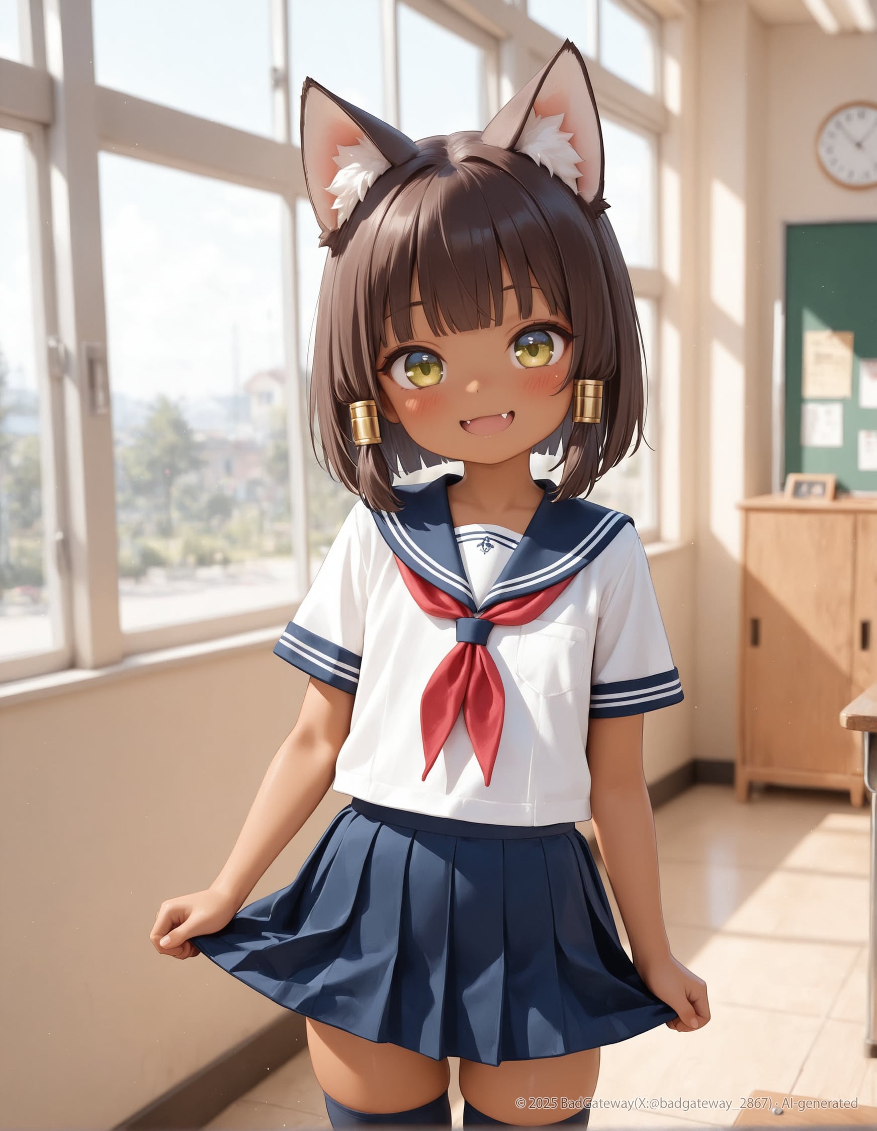 セーラー服を着た褐色エジプト猫耳ロリ娘