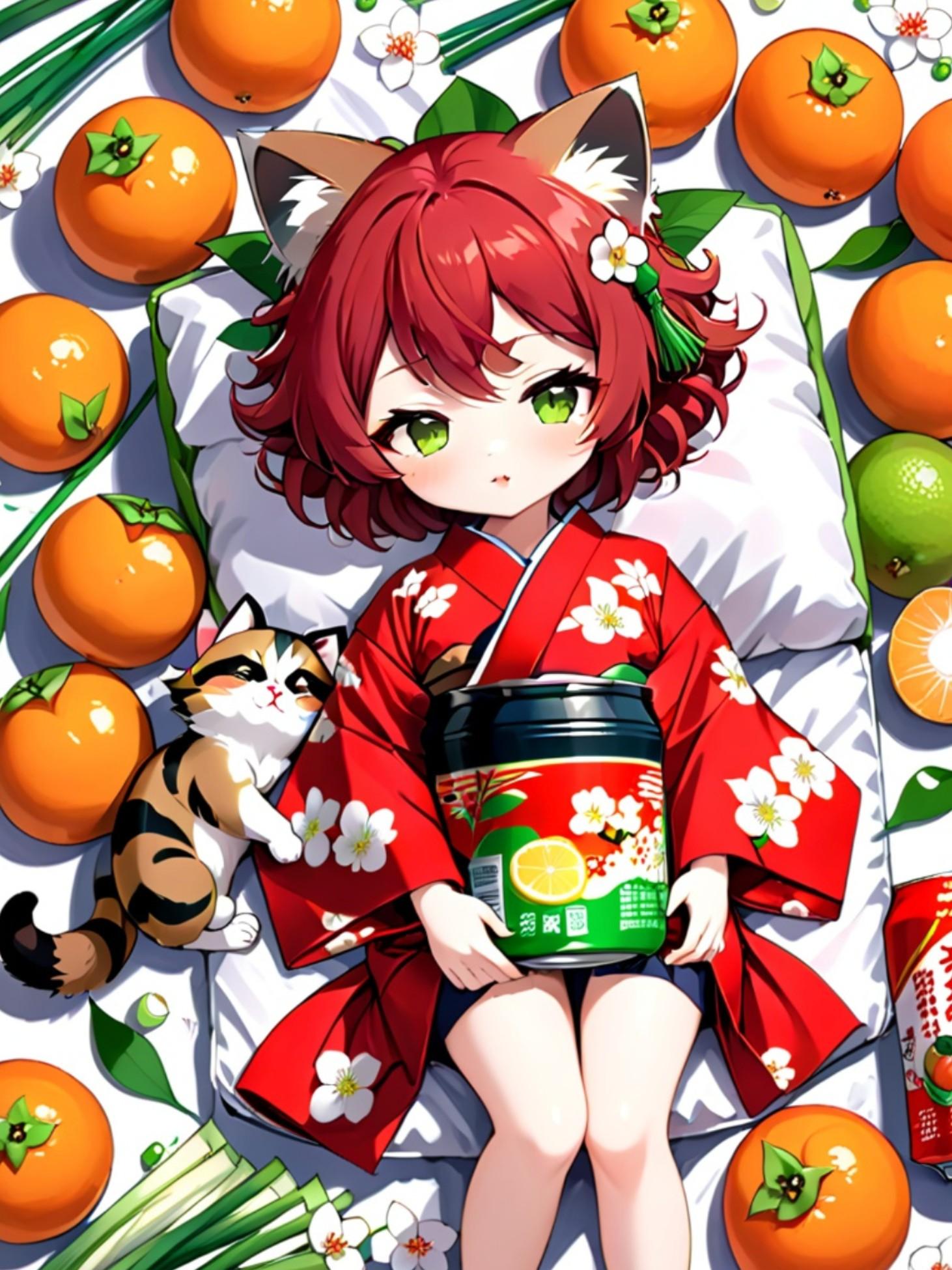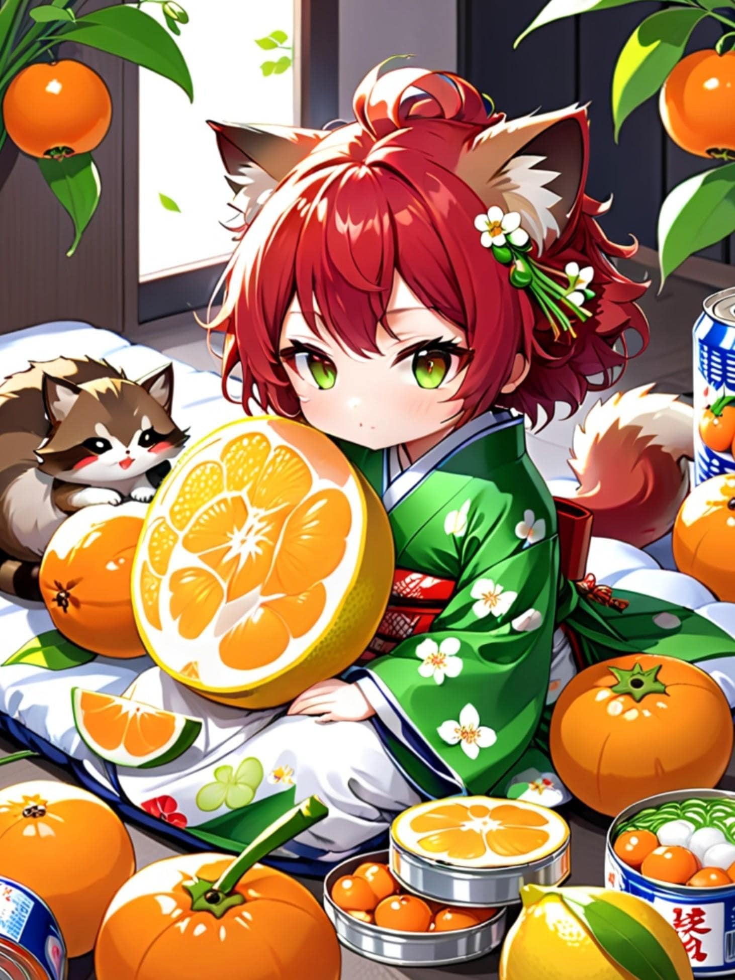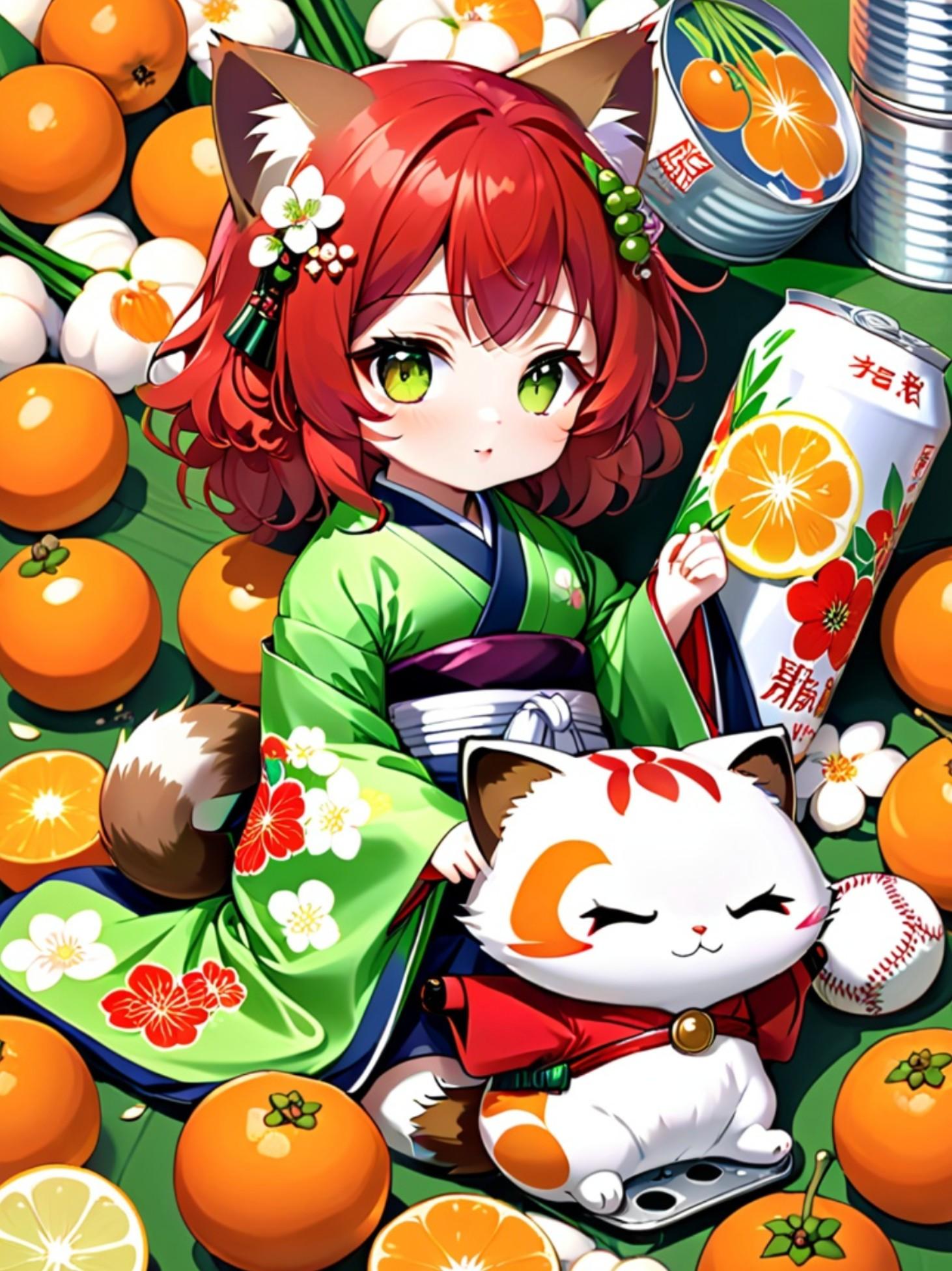 果物と着物と赤髪ちゃん