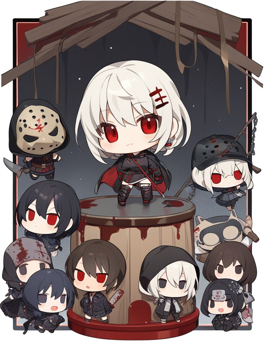 ということで、「13日の金曜日」ラストは、ちびキャラ山盛りPixAI/Rosebud版です。