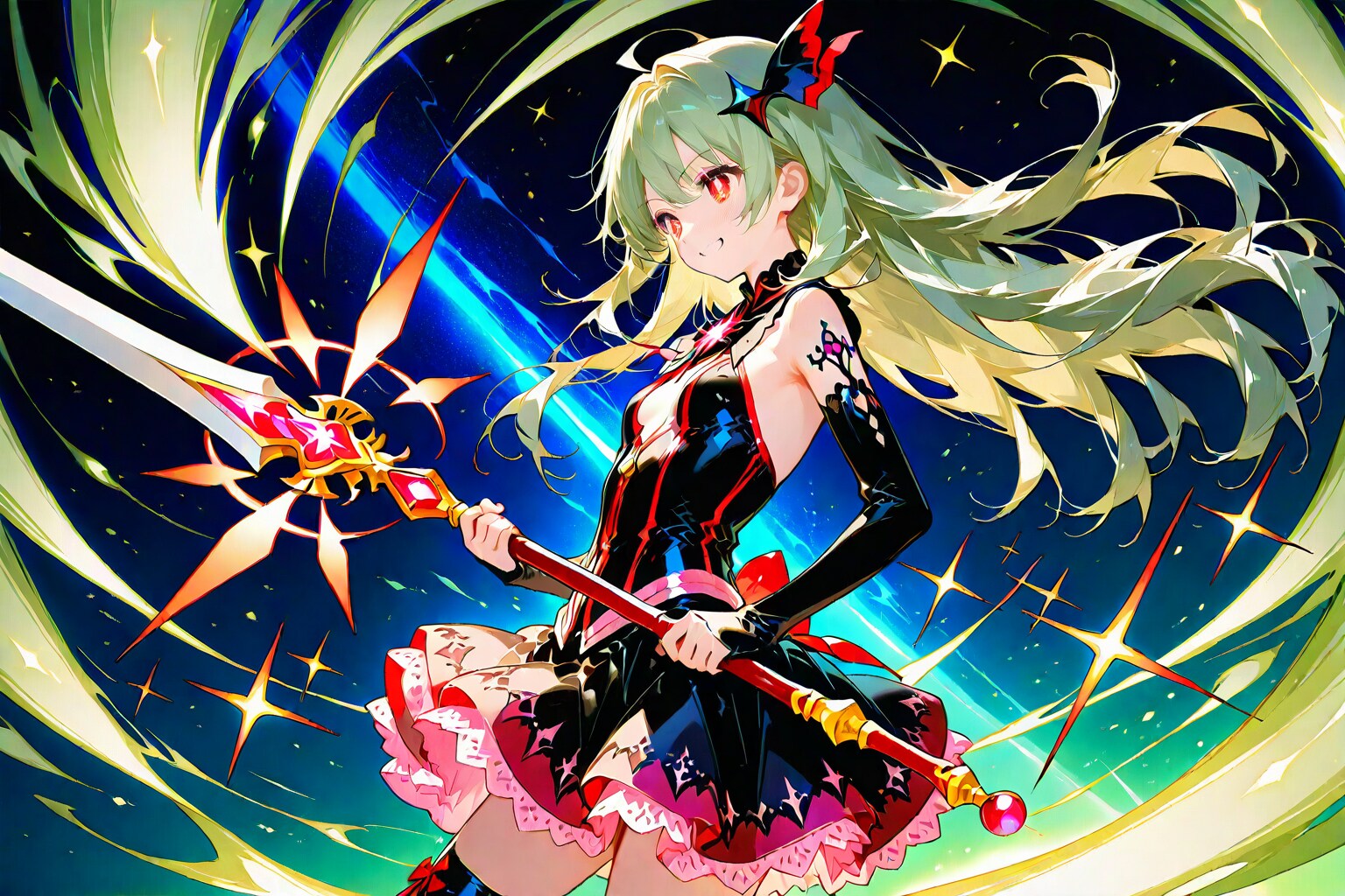 ーー彼女は不敵に笑うとゴシックドレスに変身し、両の手には神々しい武器を携えている。