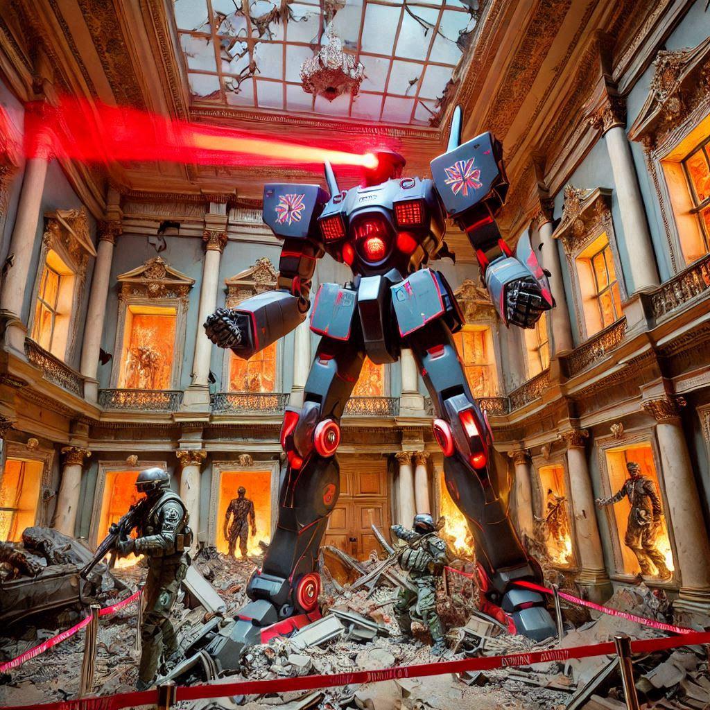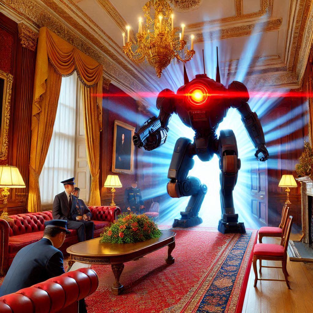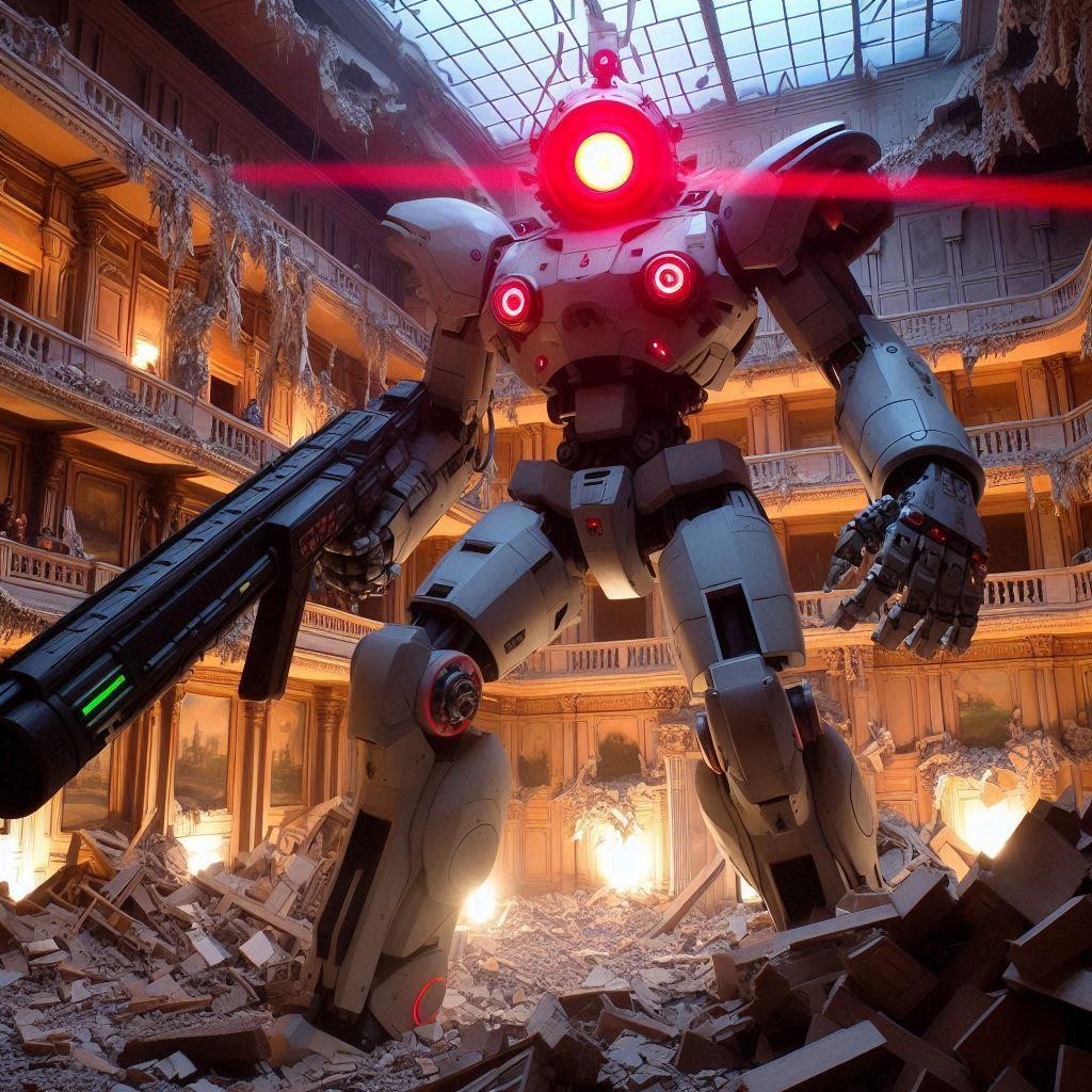 扉を突き破り、大型の警備ロボが襲い来る…!
