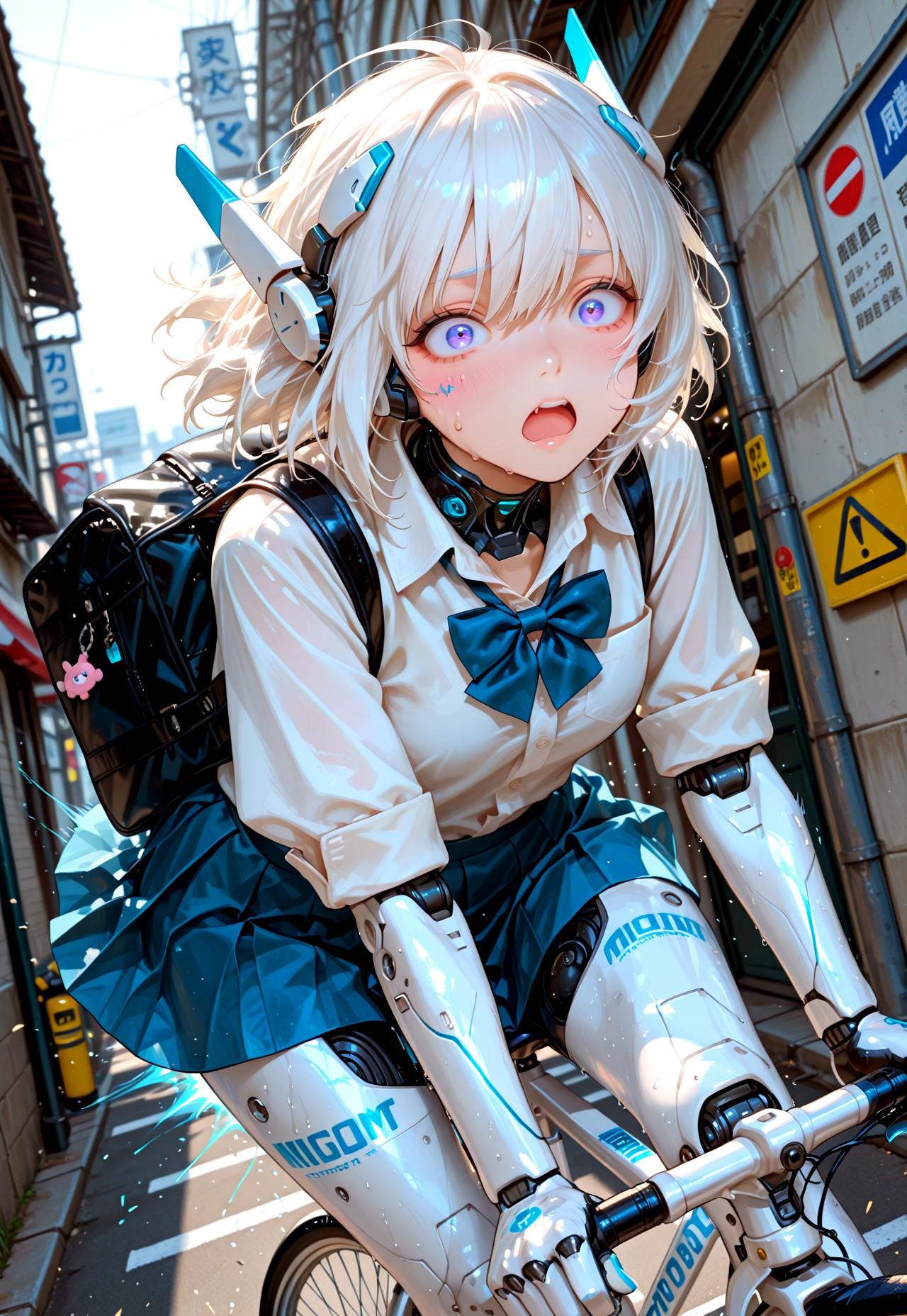 非電動駆動自転車を全力で漕ぐ素体ちゃん。