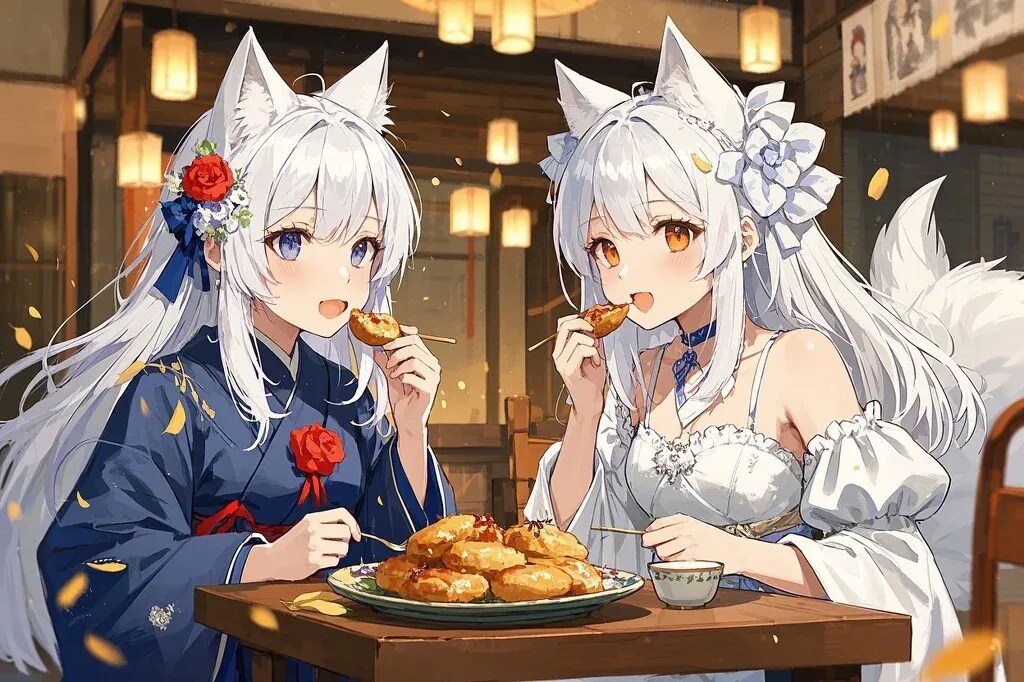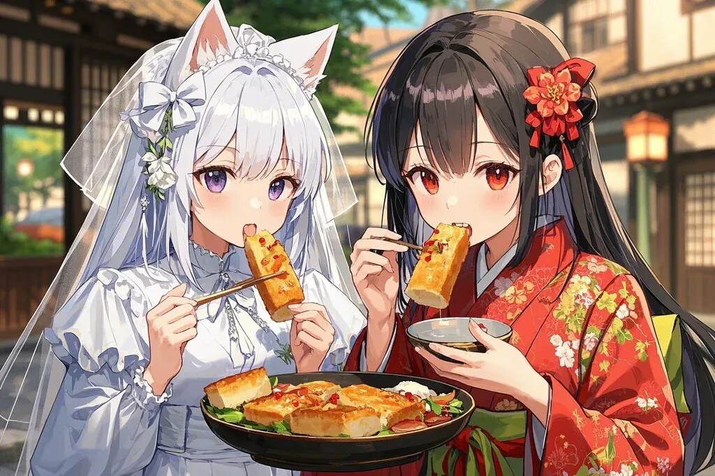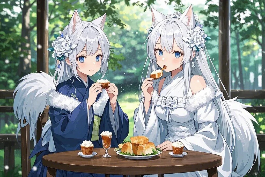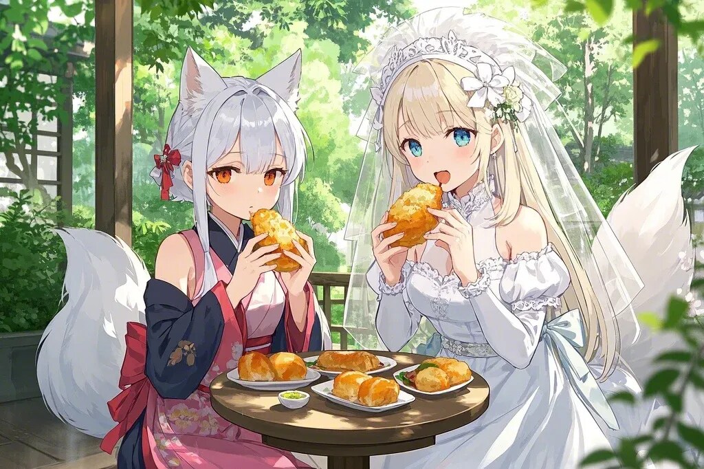 御神体様と厚揚げを食べるうちのポンコツ白キツネ