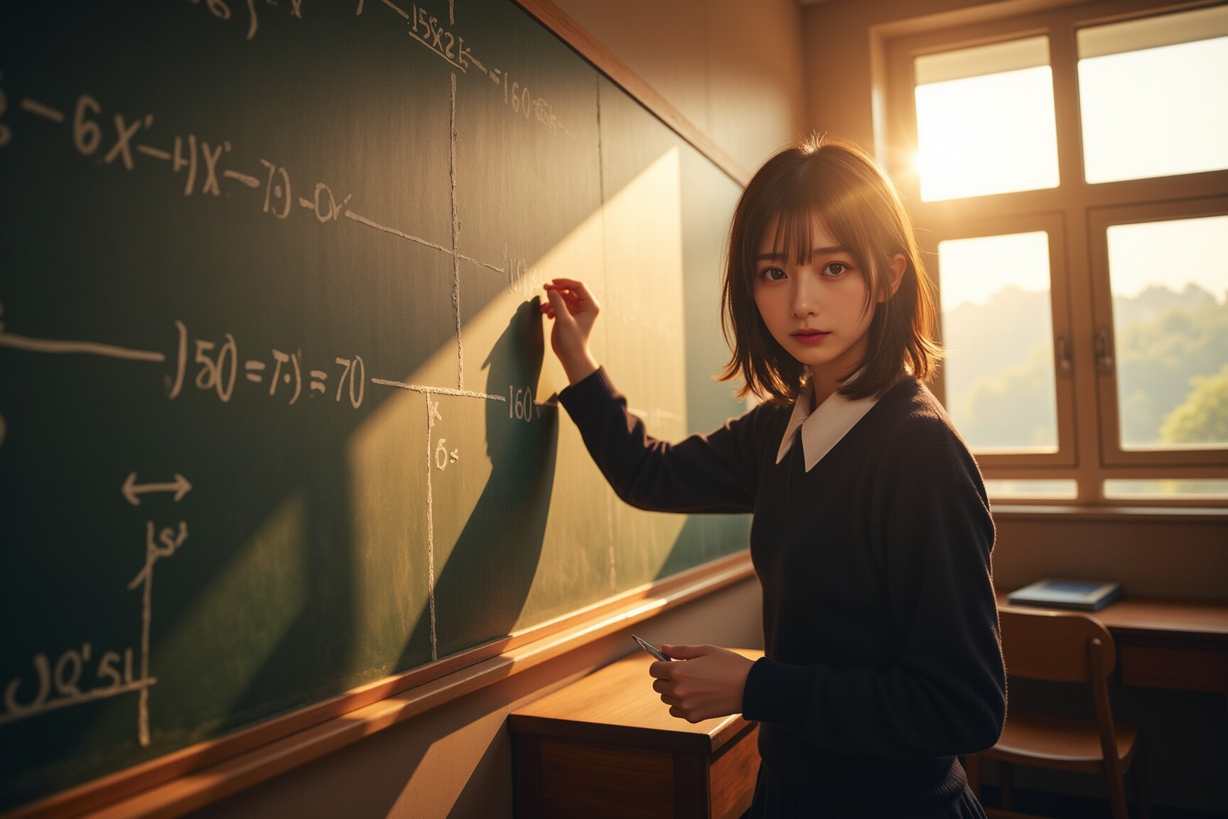 ベタに黒板と学生です。