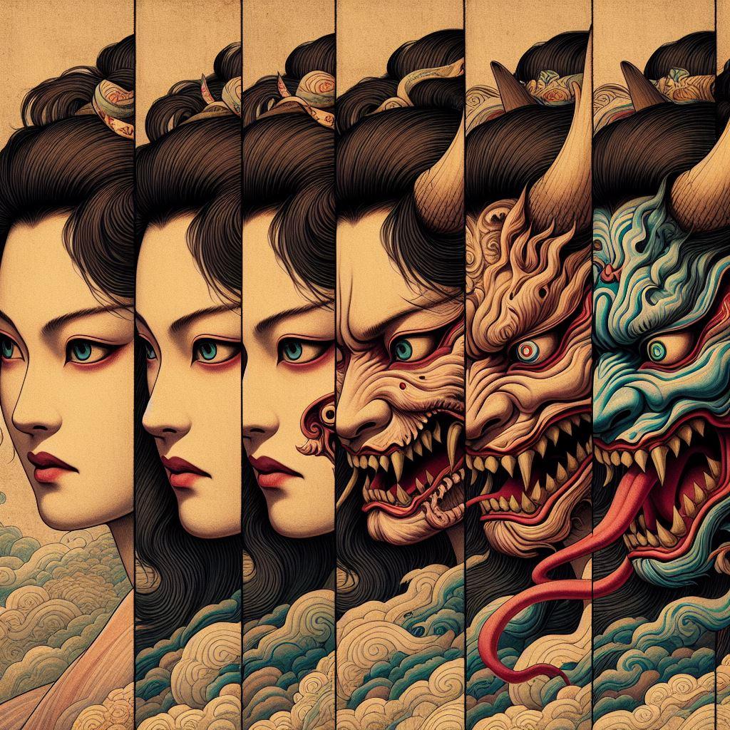 生身の女性も怖い(失礼!言葉の綾というものです、悪気はないのでどうかご容赦を)ですが、生成り>般若となるに連れ、見た目も本性も怖くなります。