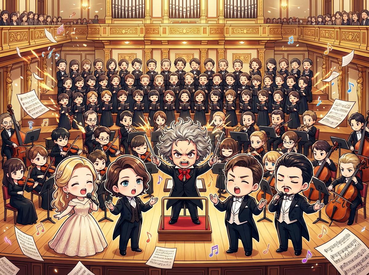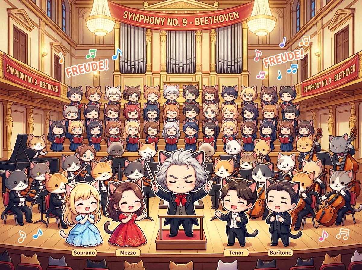 6枚目は和風の第9。戦時中は外国文化の多くは禁じられていましたが、ベートーヴェンは同盟国のドイツの人なので許可されていたとか。それどころか国が率先して第9を演奏した?というような話を昔聞いたことがあります。そのときの合唱は日本語。本来なら「フロイデ!」と歌うところを「うれし!」と言ったとか、天皇讃歌として歌われたようです。