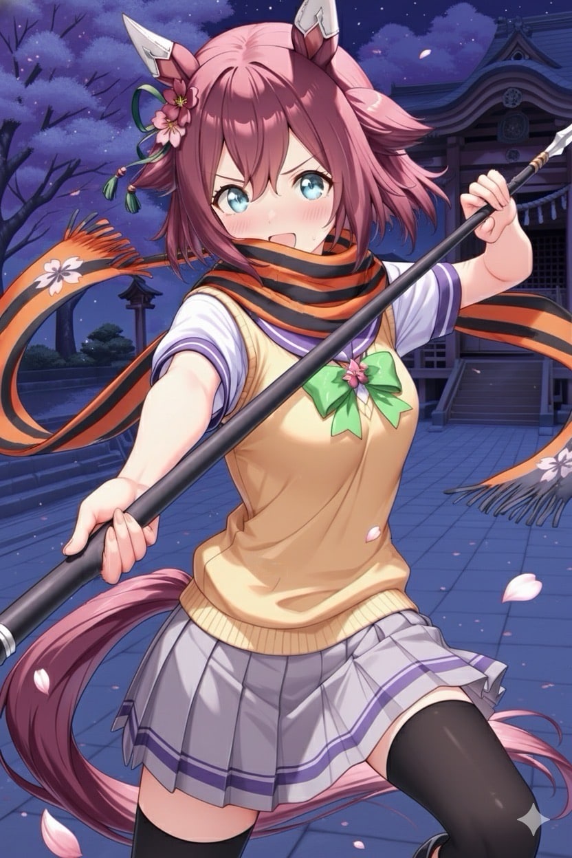 夜桜四重奏の槍桜ヒメの格好をしたサクラチヨノオー。
