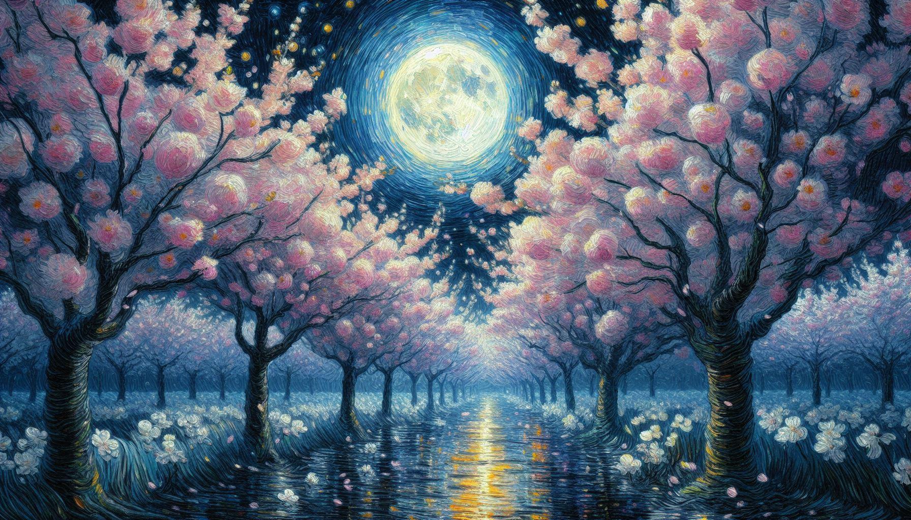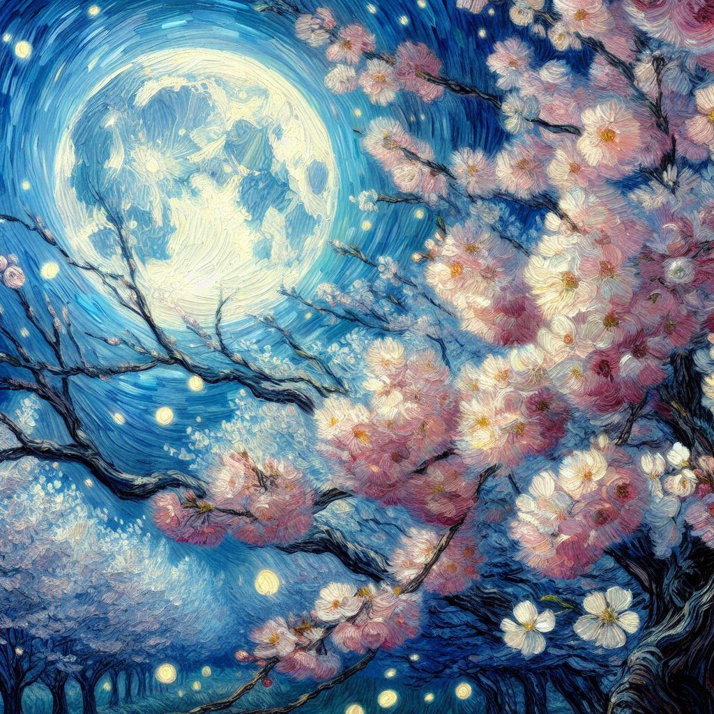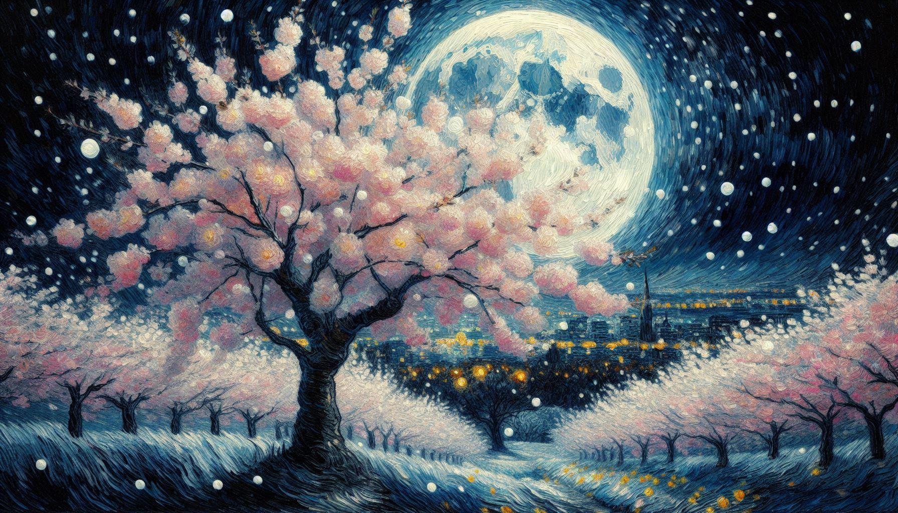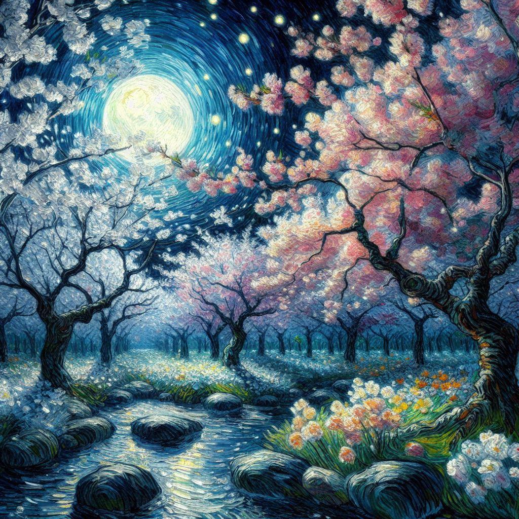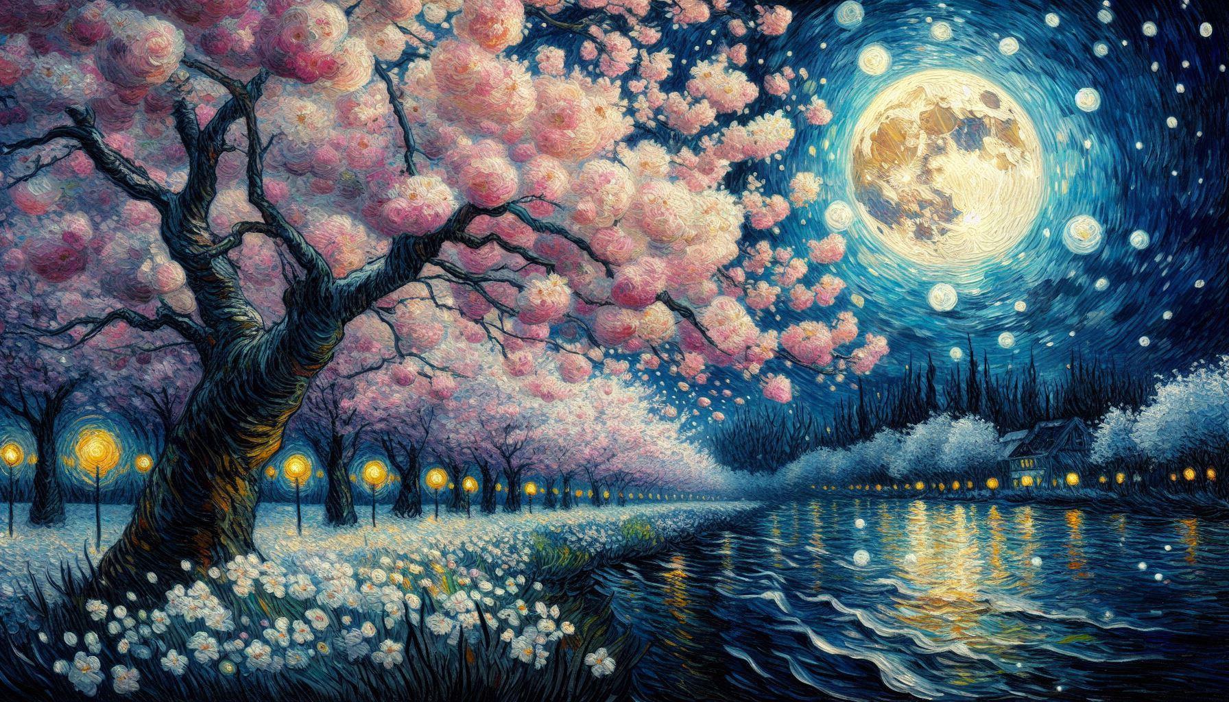 フィンセント・ファン・ゴッホは日本を訪れたことはありませんが、もし来日して夜桜を見たらこんな感じかな?