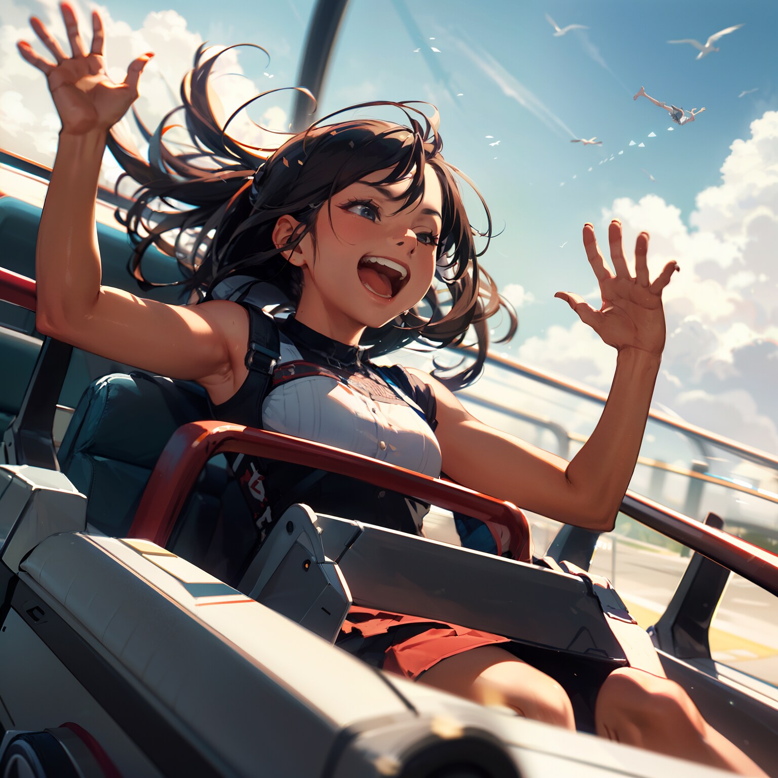 ましてイラストのジェットコースターは1955年に作られたのかってくらい安全面に不安がありそうな作りです;