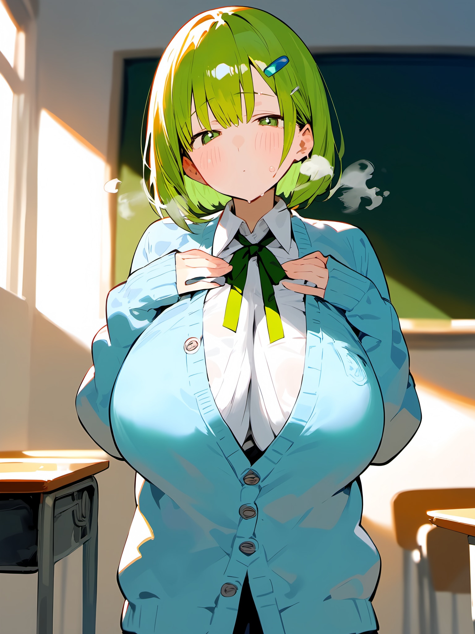 緑髪姉 服買うの大変だし・・・肩凝るし・・・走ると痛いし・・・