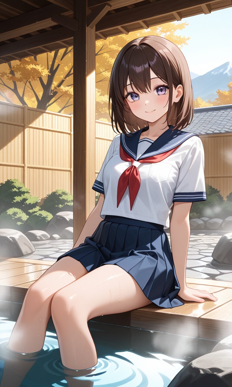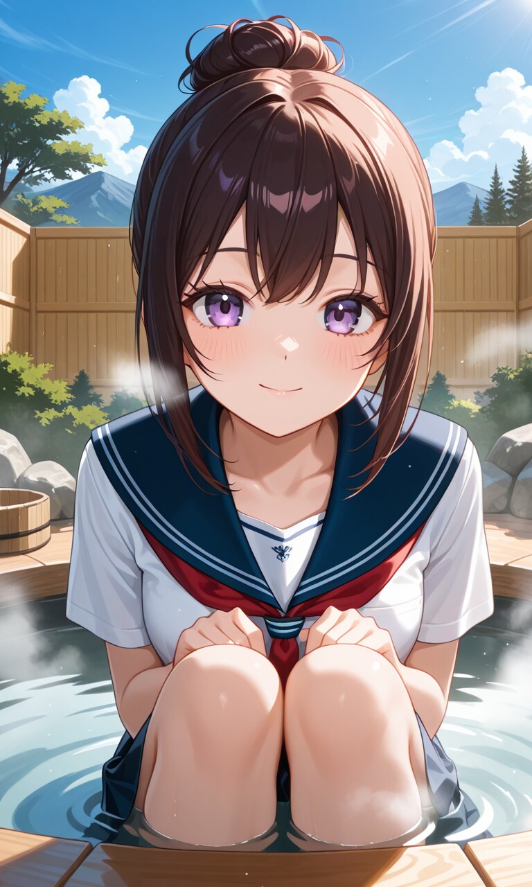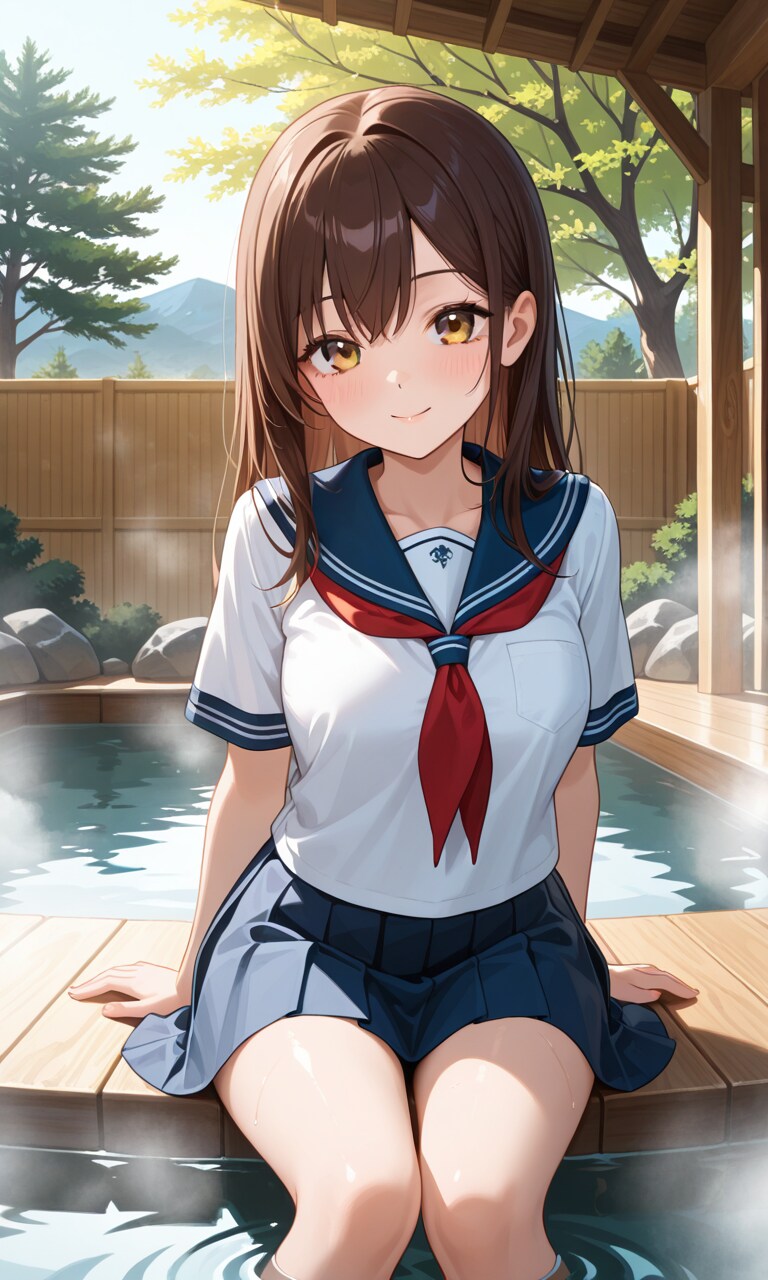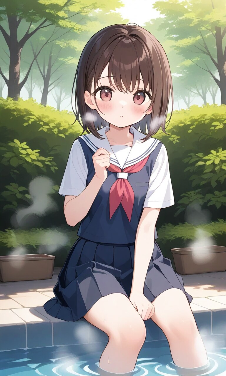 校庭と指定しただけで女子生徒が温泉に入った部分まで作ってくれてます。