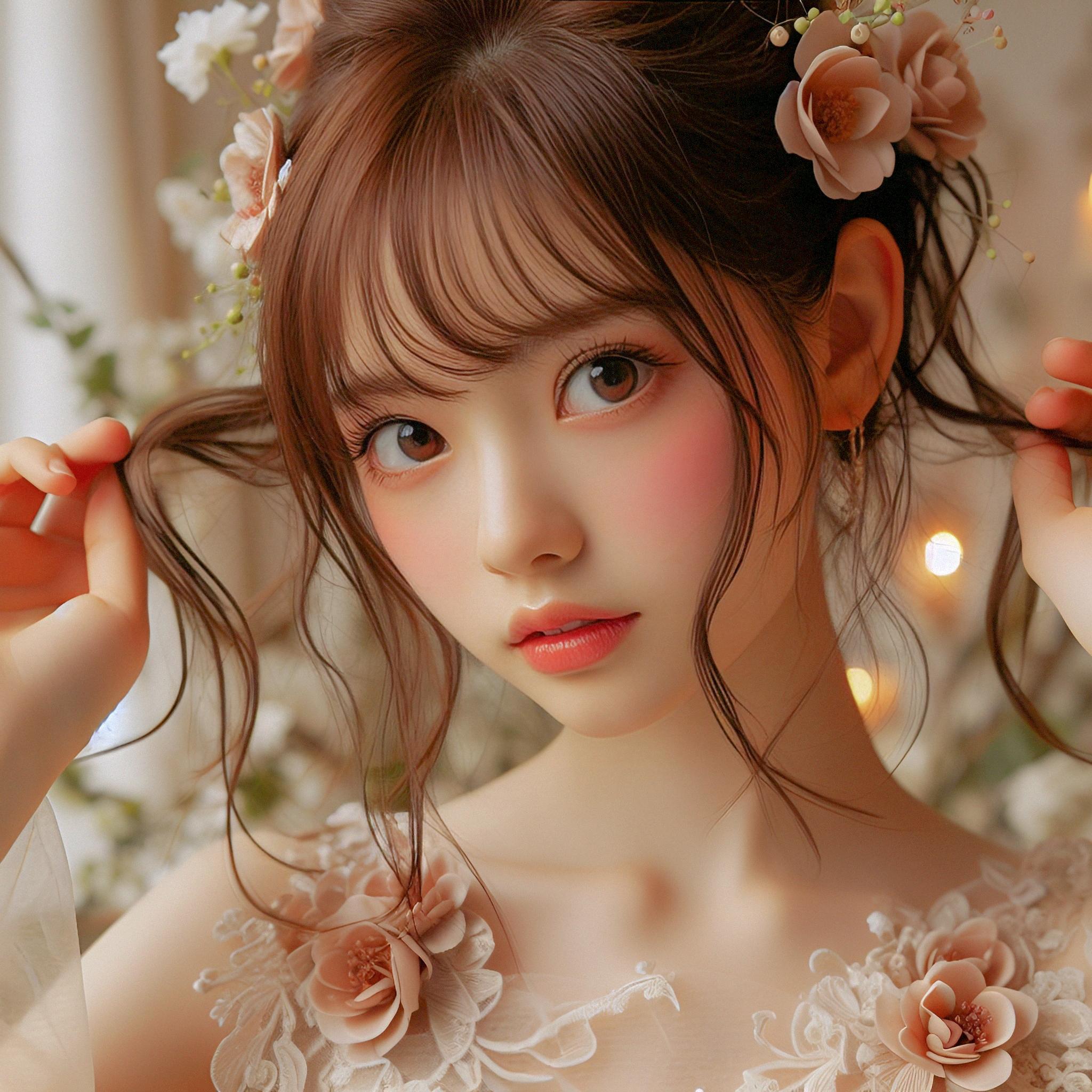 前回の「花飾り」が綺麗に出来たので、プロンプト見直して改良してみました。