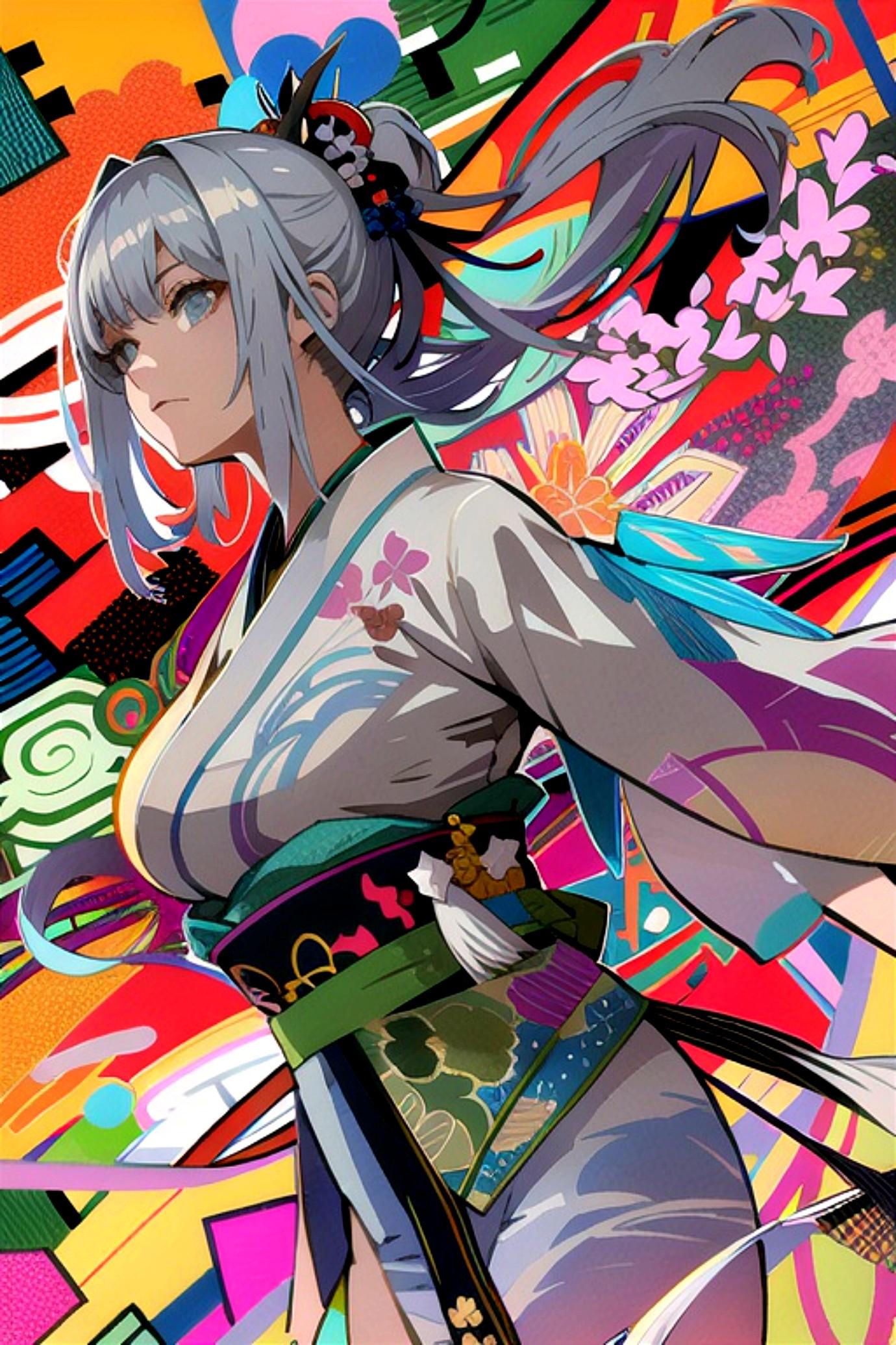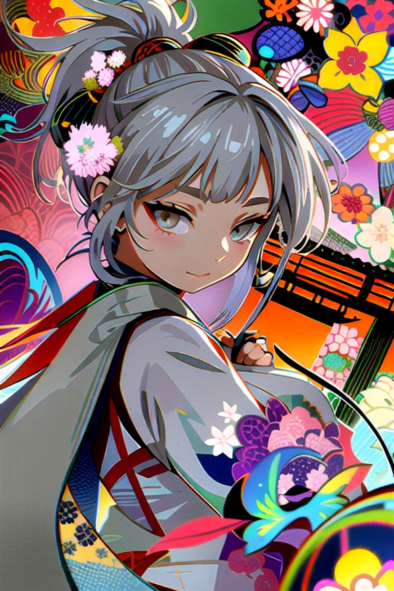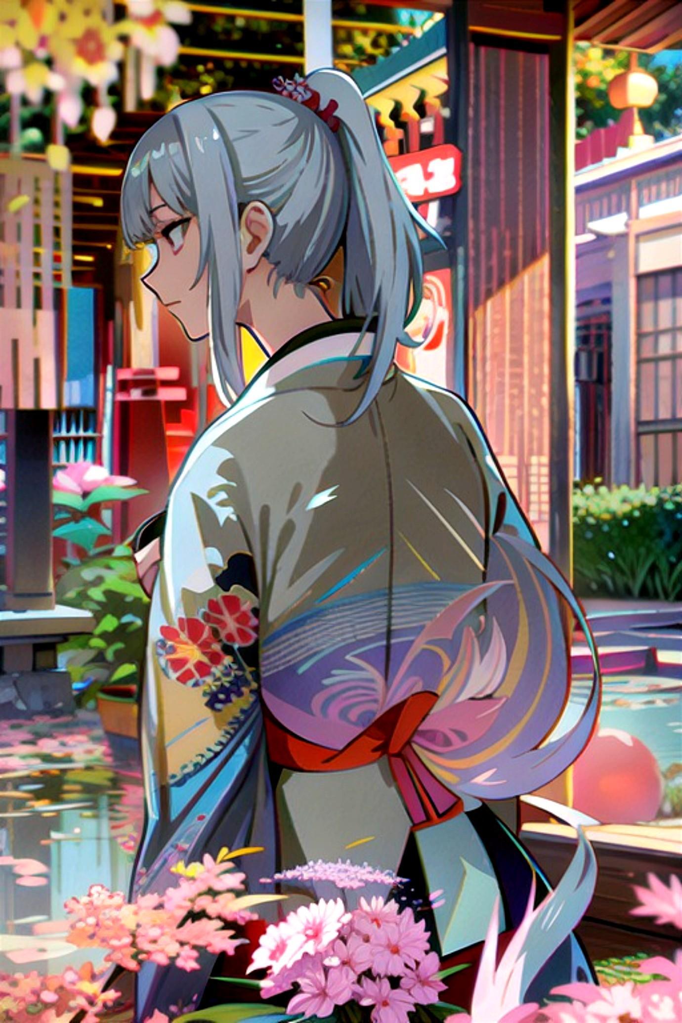 着物姿の銀髪ちゃん