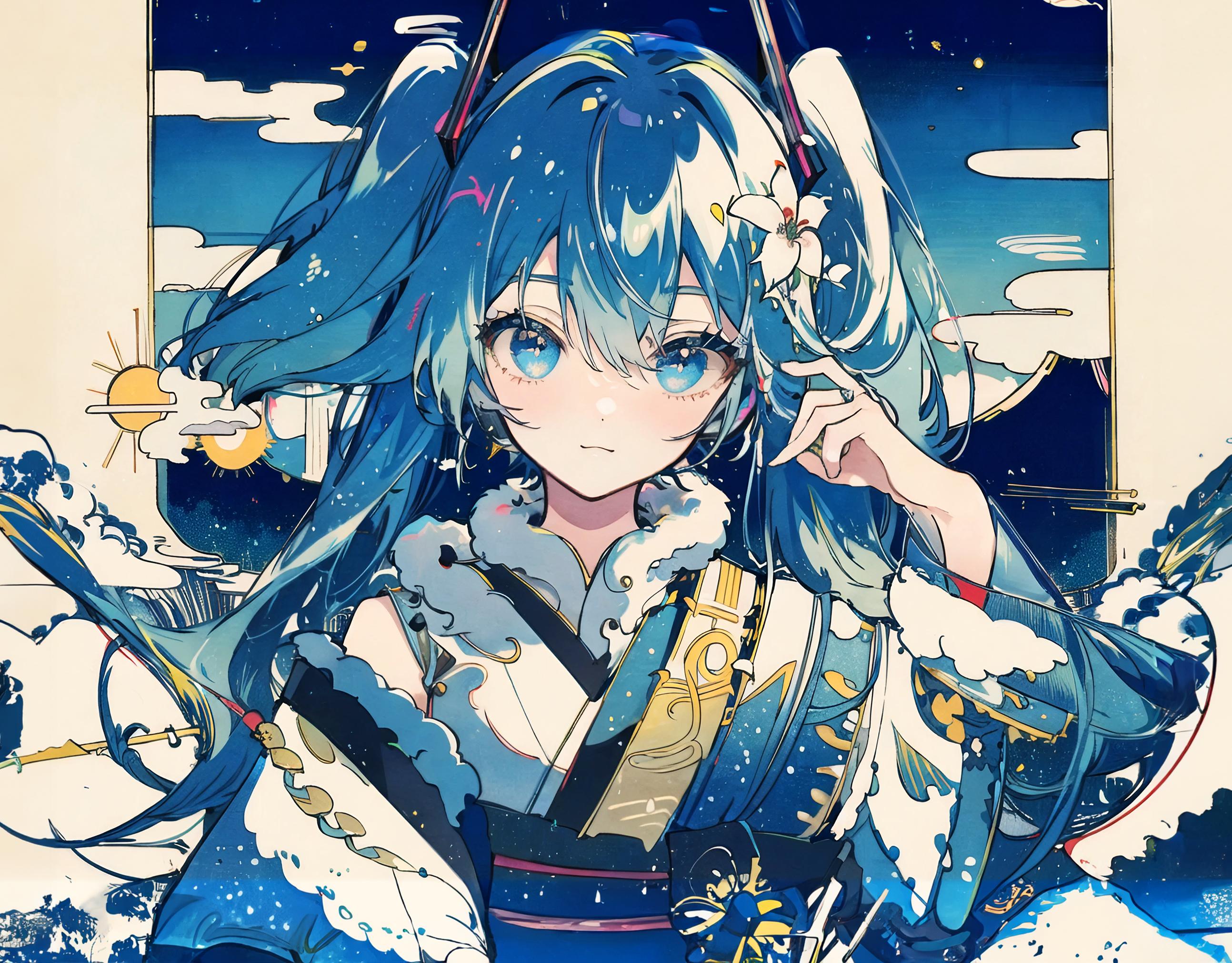 初音未來 初音ミク Miku VOCALOID 着物 浮世絵 ツインテール