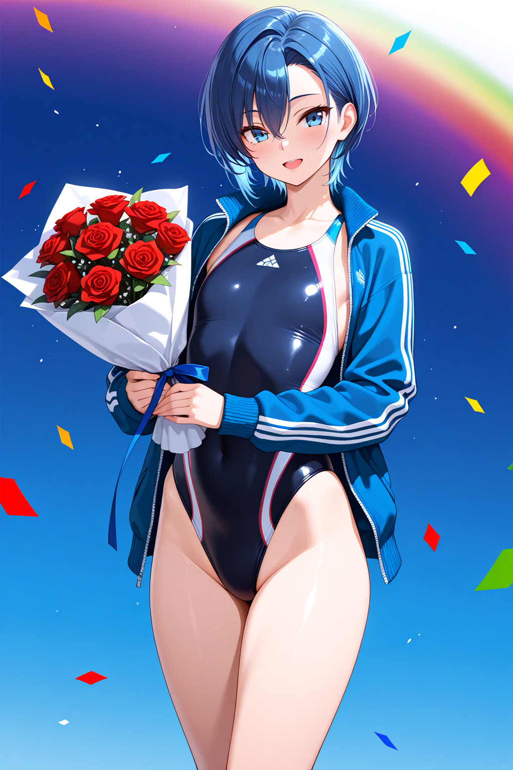 【1girl,(mature),age 20yo,(tall female:1.2),blue eyes,tsurime,blue hair,(short hair:1.2),asymmetrical bangs,hair between eyes,flat chest,】