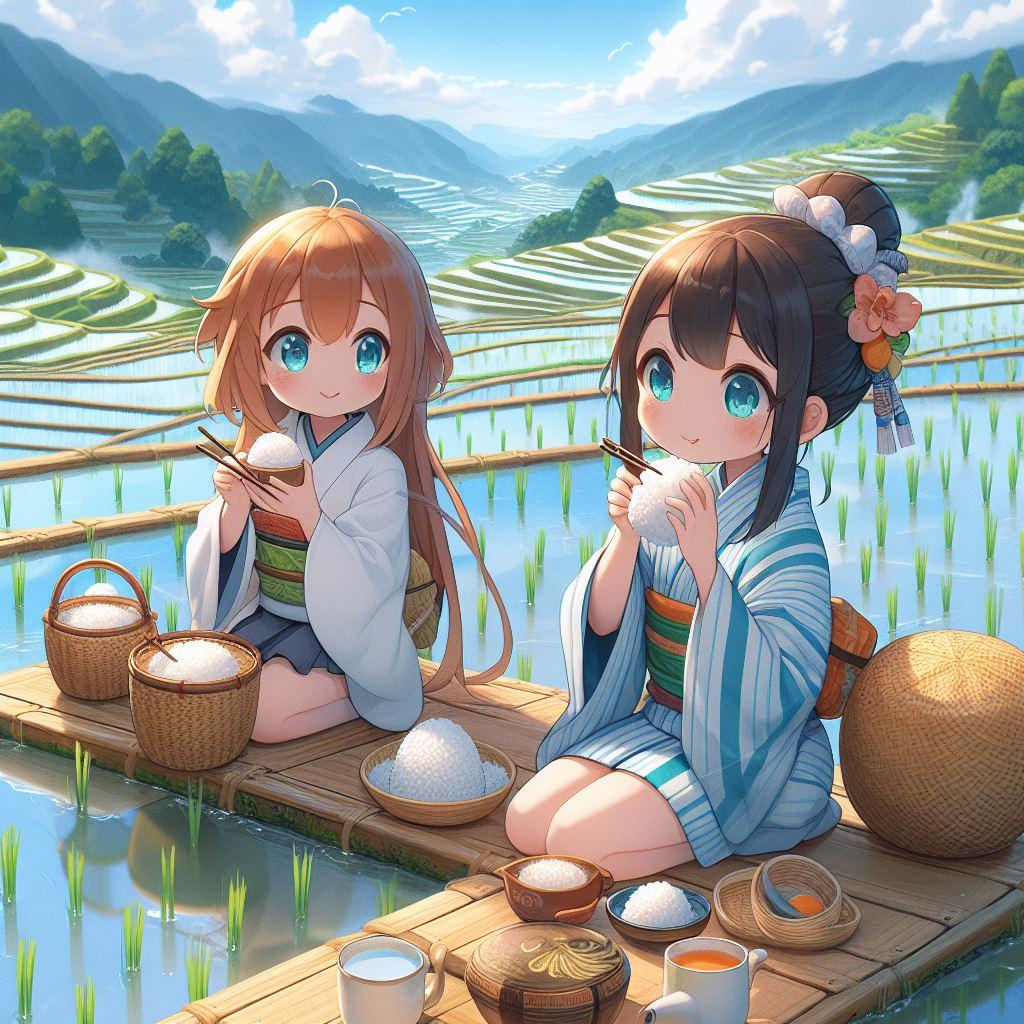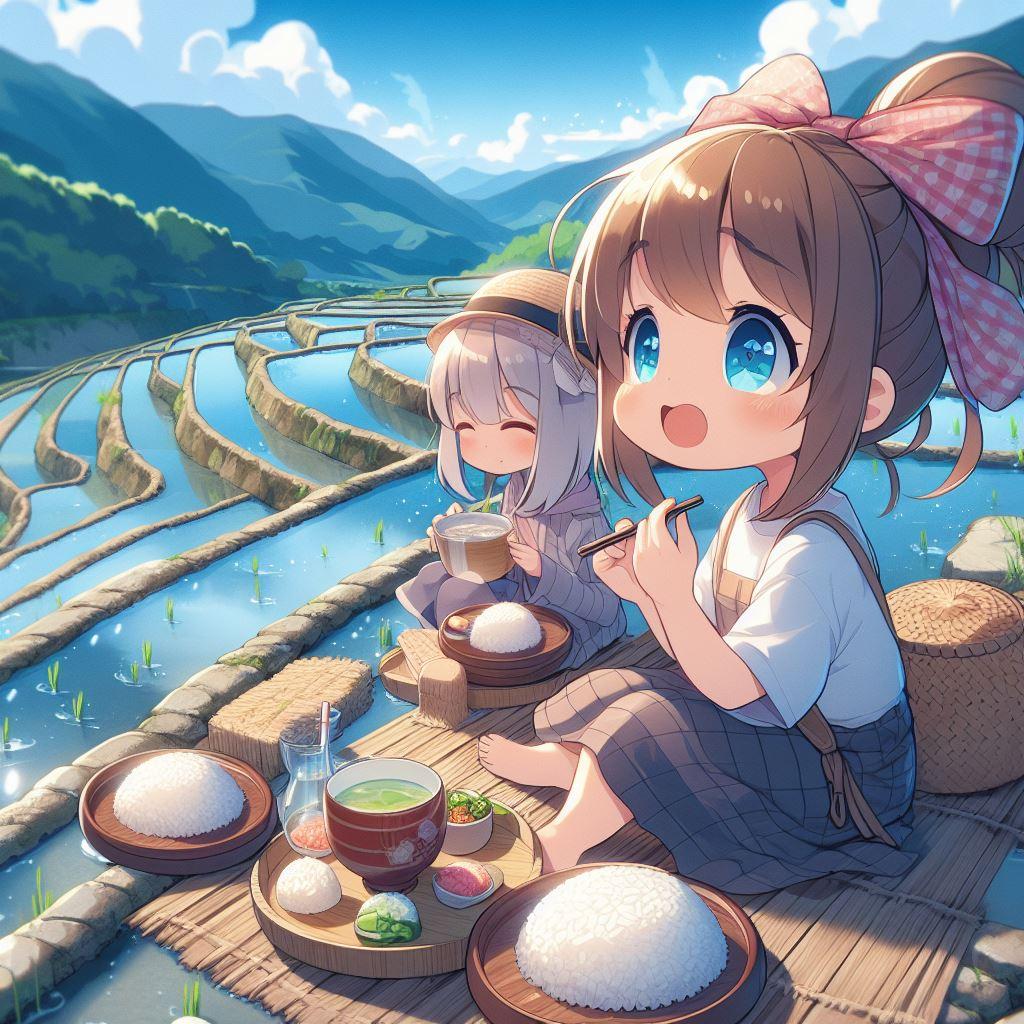 田植えの合間のおにぎり